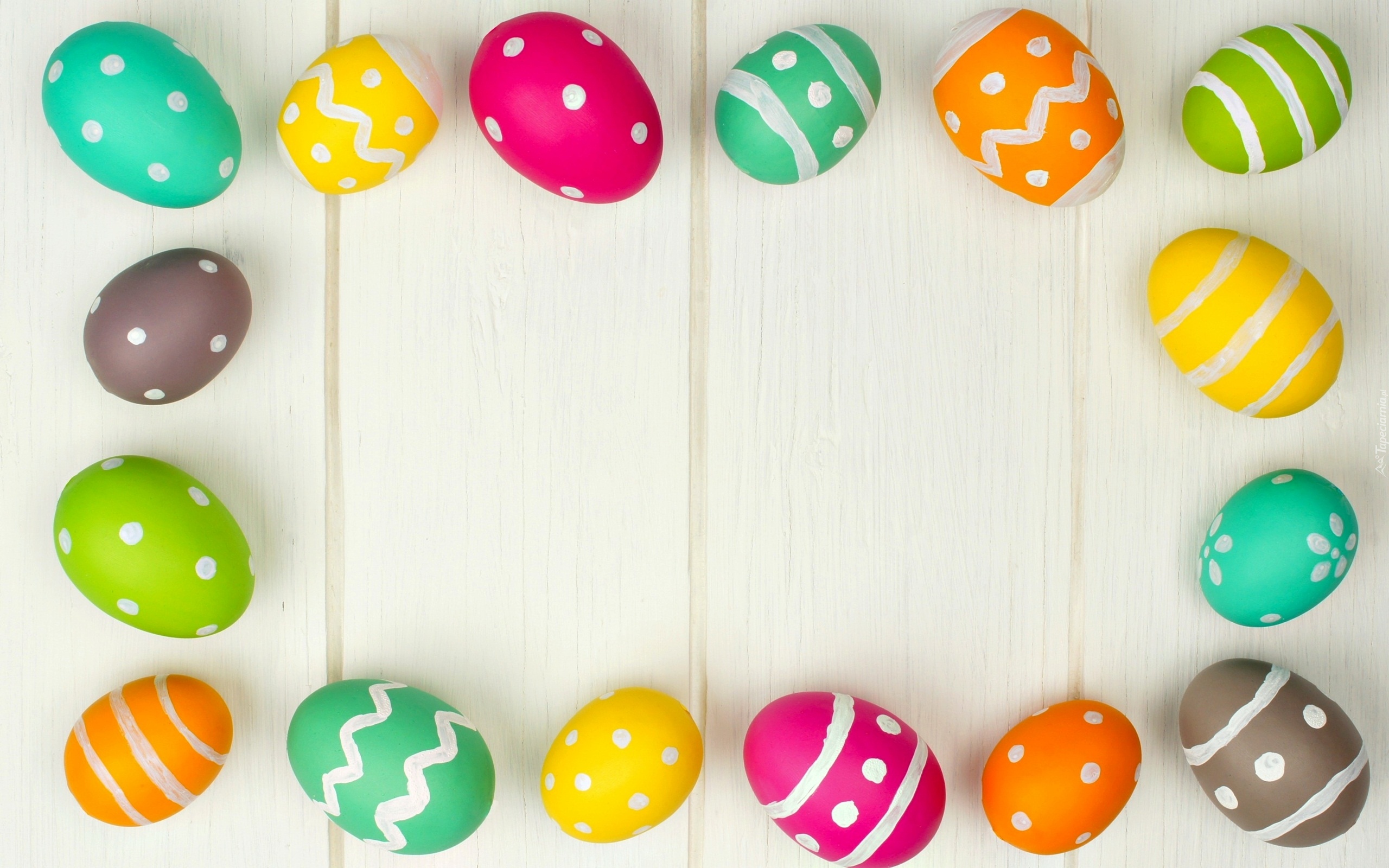Edytor tapety: Wielkanocne jaja na białych deskach