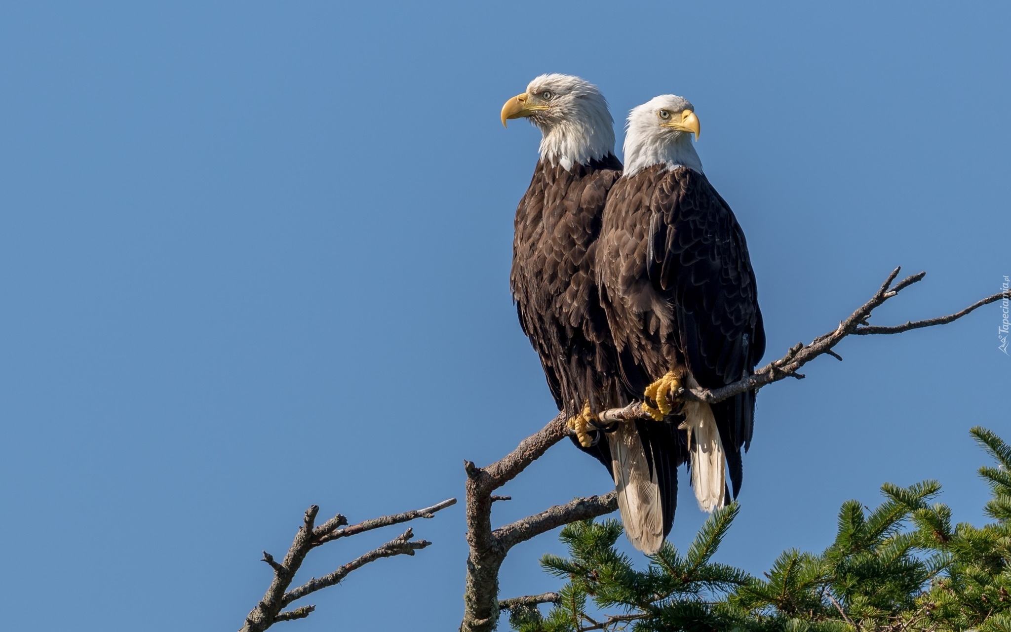 Edytor tapety: Dwa bieliki amerykańskie na gałęzi