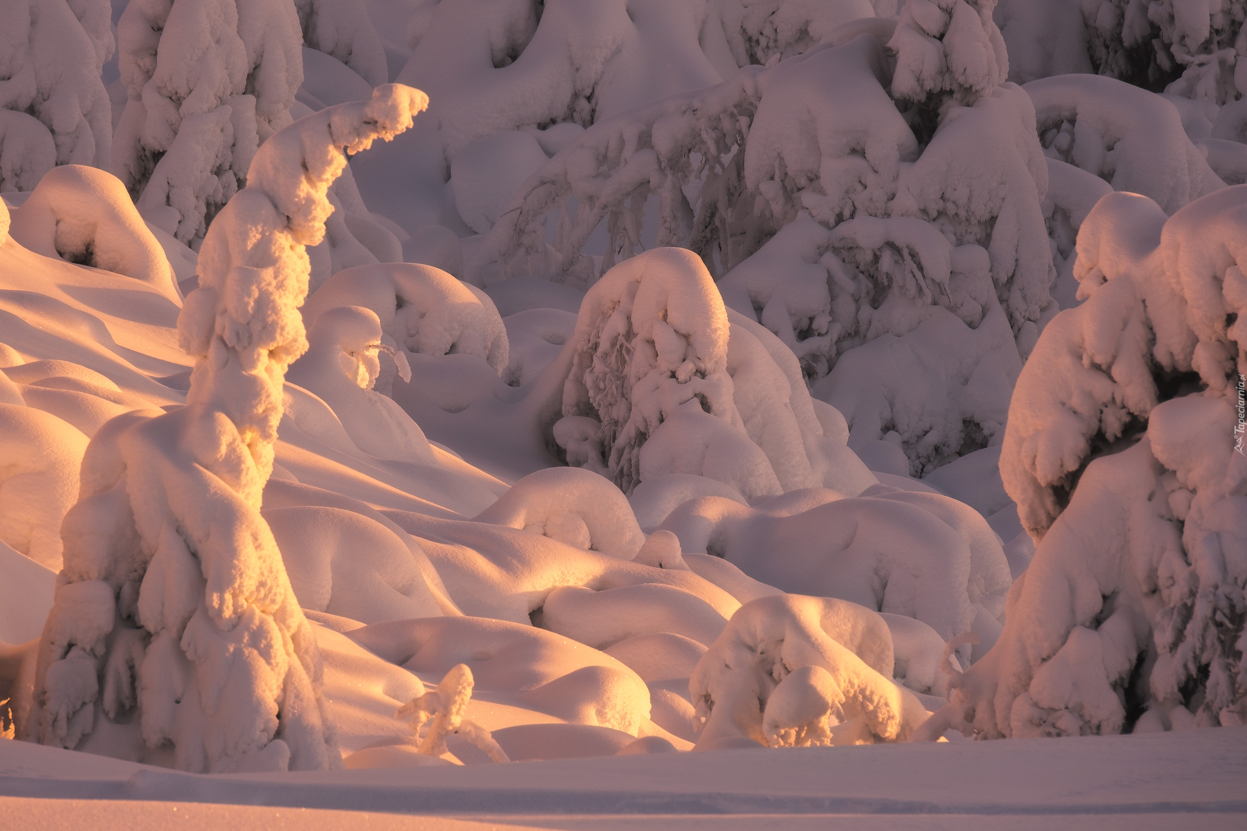 Edytor tapety: Drzewa ośnieżone w słońcu