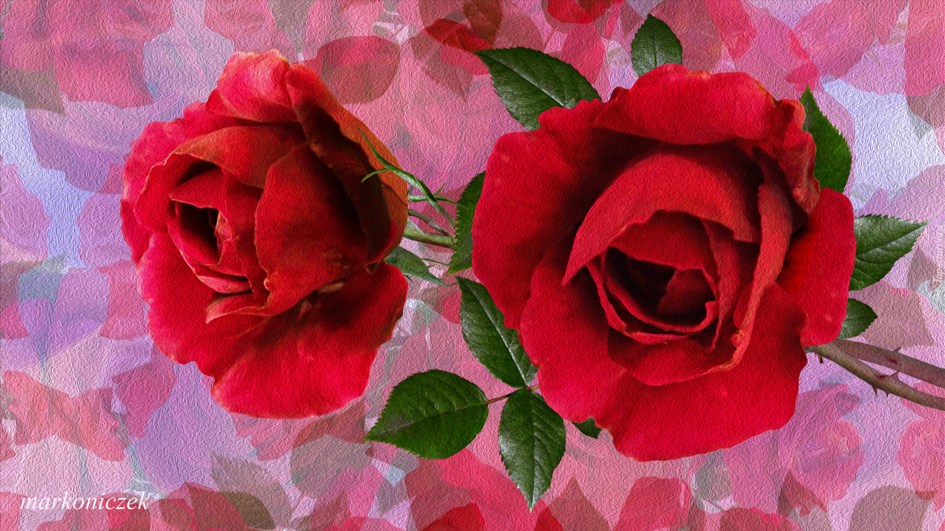 Edytor tapety: Dwie czerwone róże w grafice