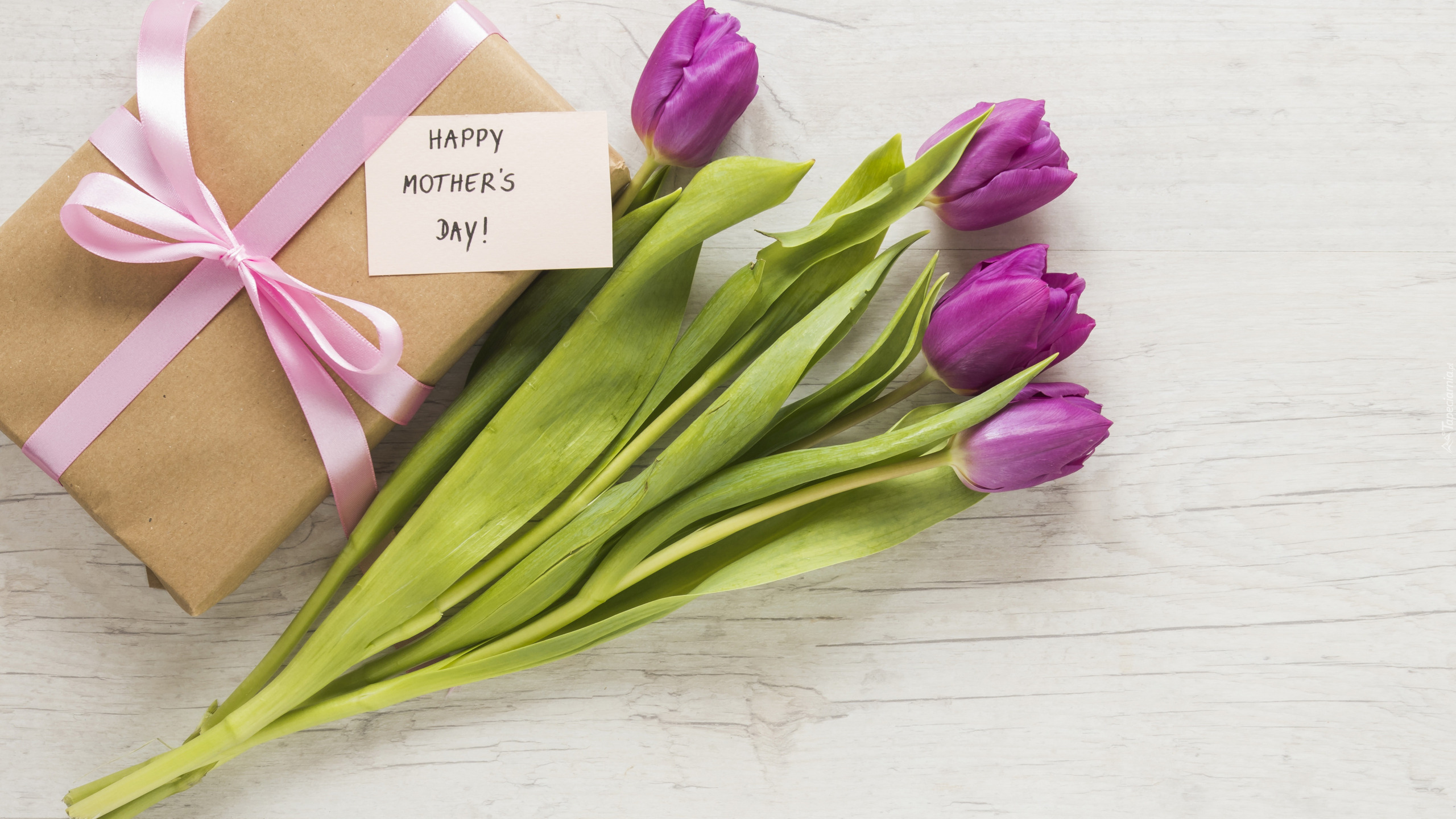 Edytor tapety: Prezent i tulipany na Dzień Matki