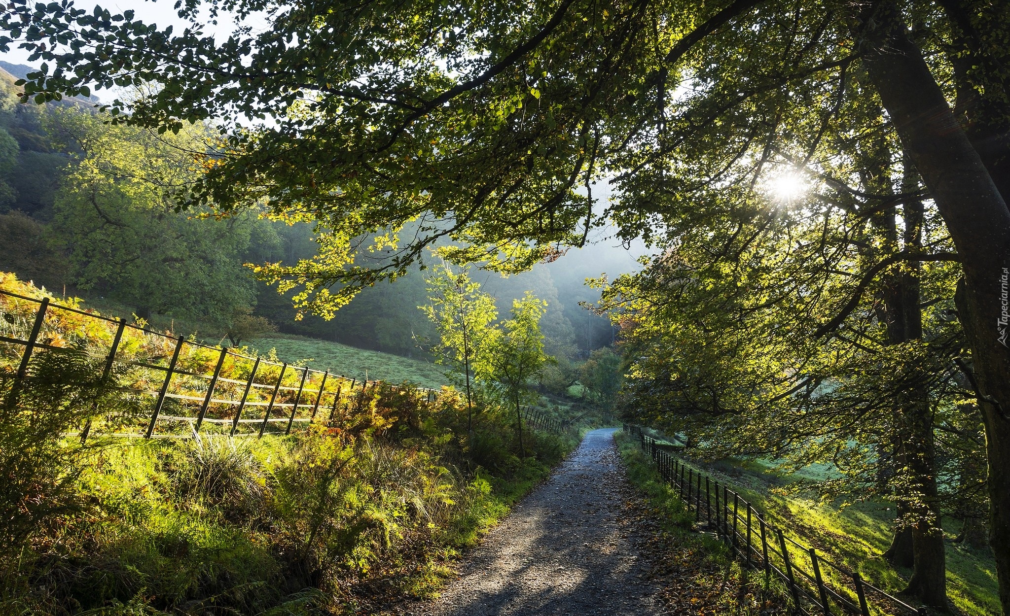 Edytor tapety: Drzewa wzdłuż ogrodzonej drogi