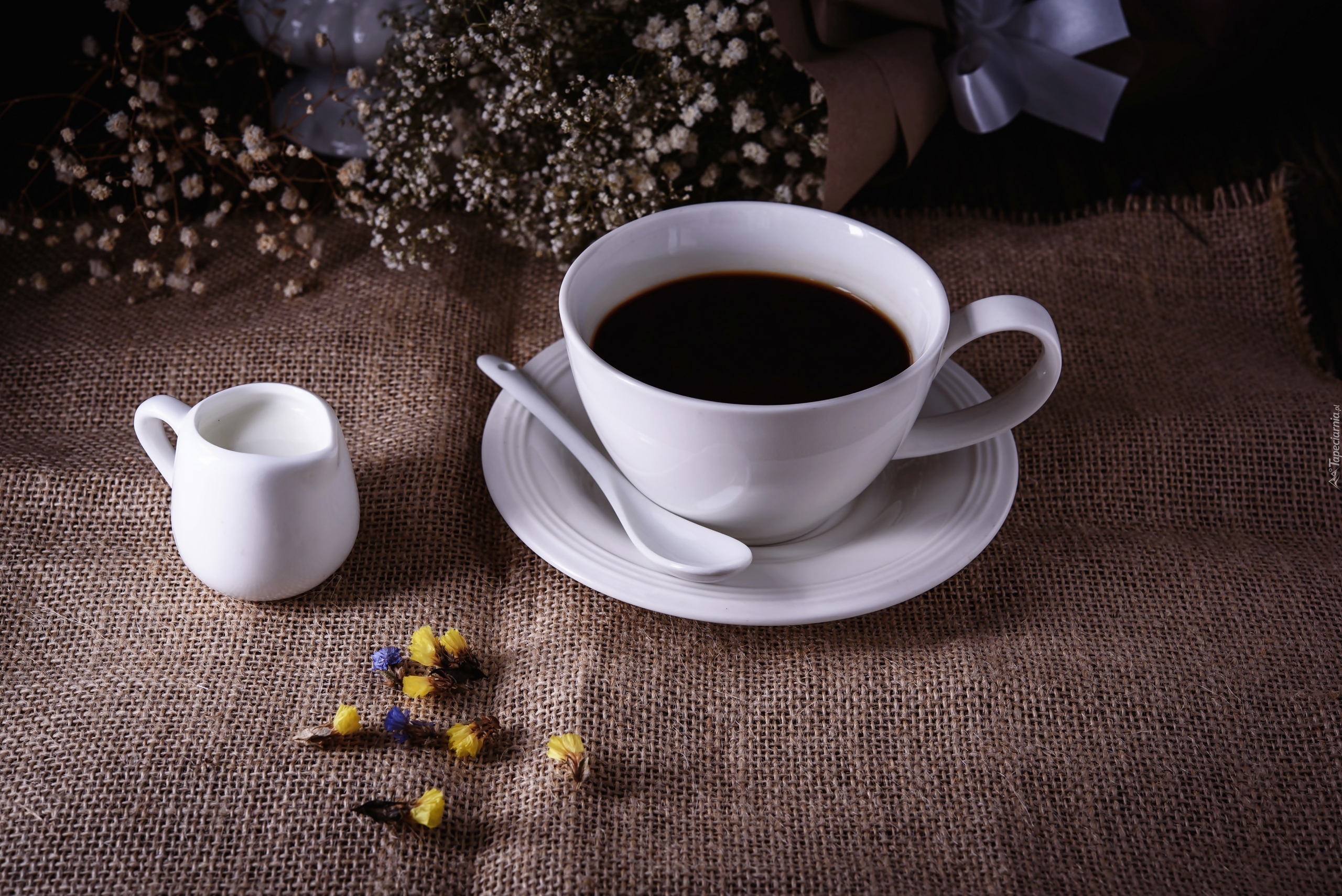 Edytor tapety: Mleko w dzbanuszku obok filiżanki z kawą