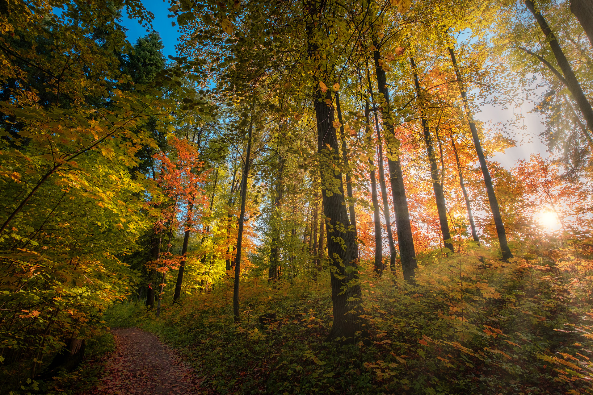 Edytor tapety: Ścieżka prowadząca przez las