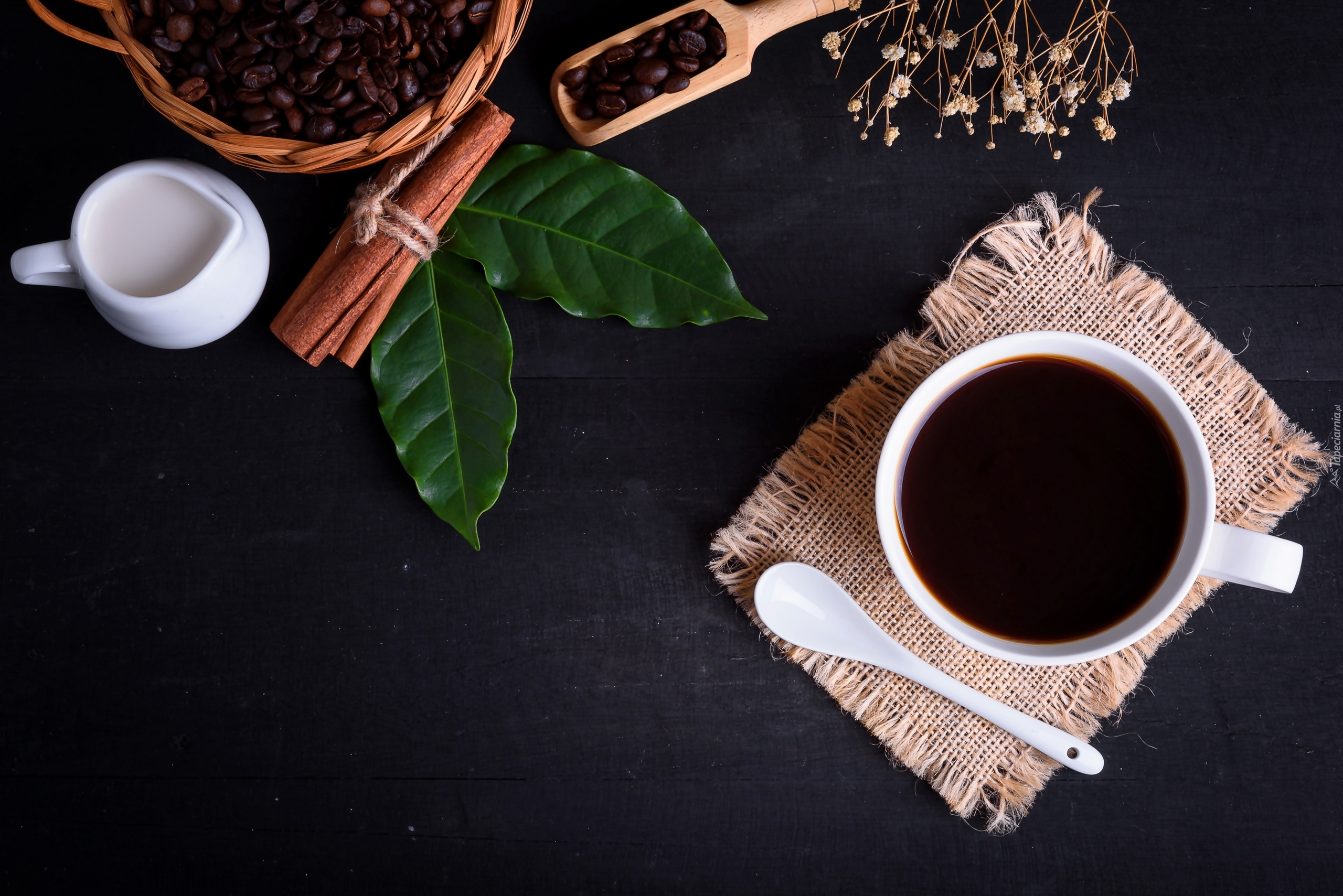 Edytor tapety: Filiżanka z kawą postawiona na serwetce
