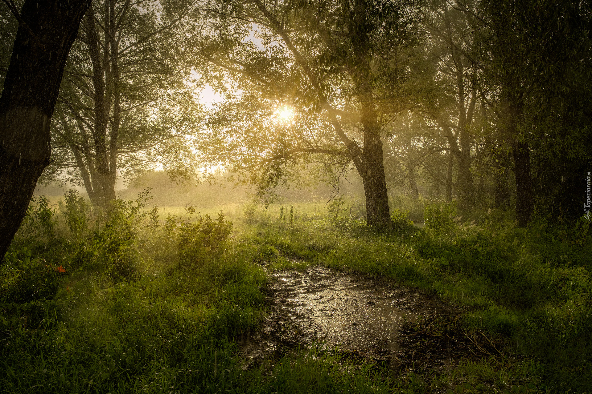 Edytor tapety: Letni deszcz w lesie