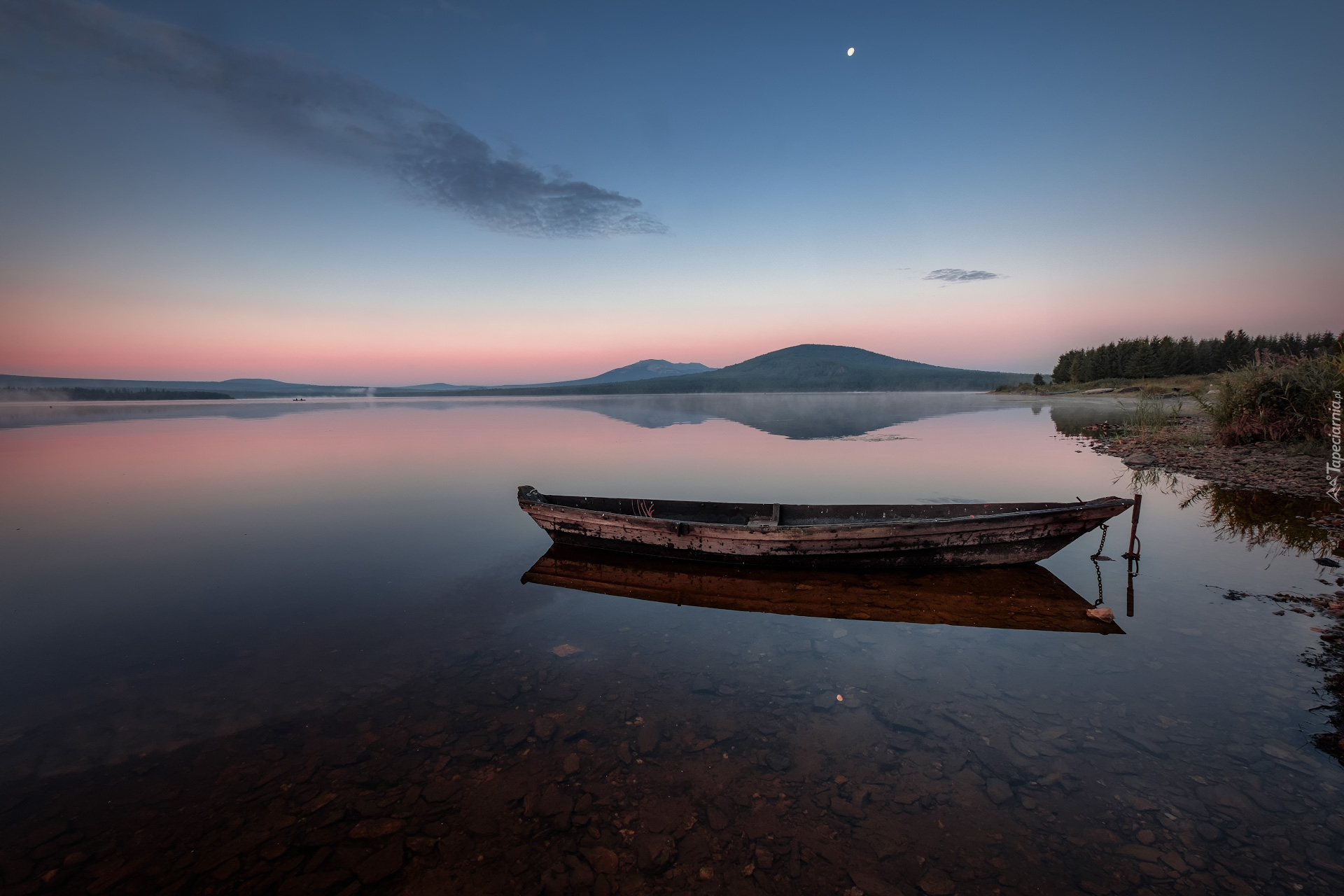 Edytor tapety: Łódka na jeziorze Ziuratkul