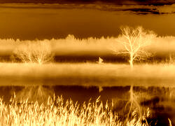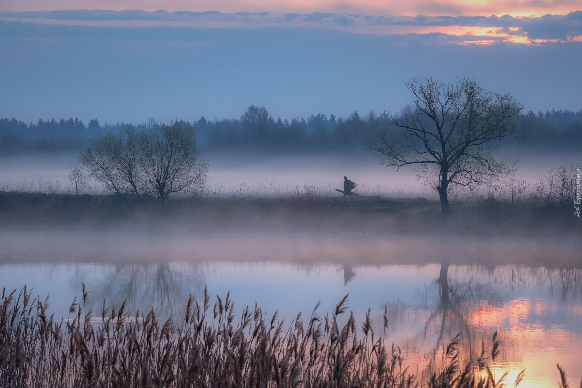 Edytor tapety: Człowiek nad zamgloną rzeką