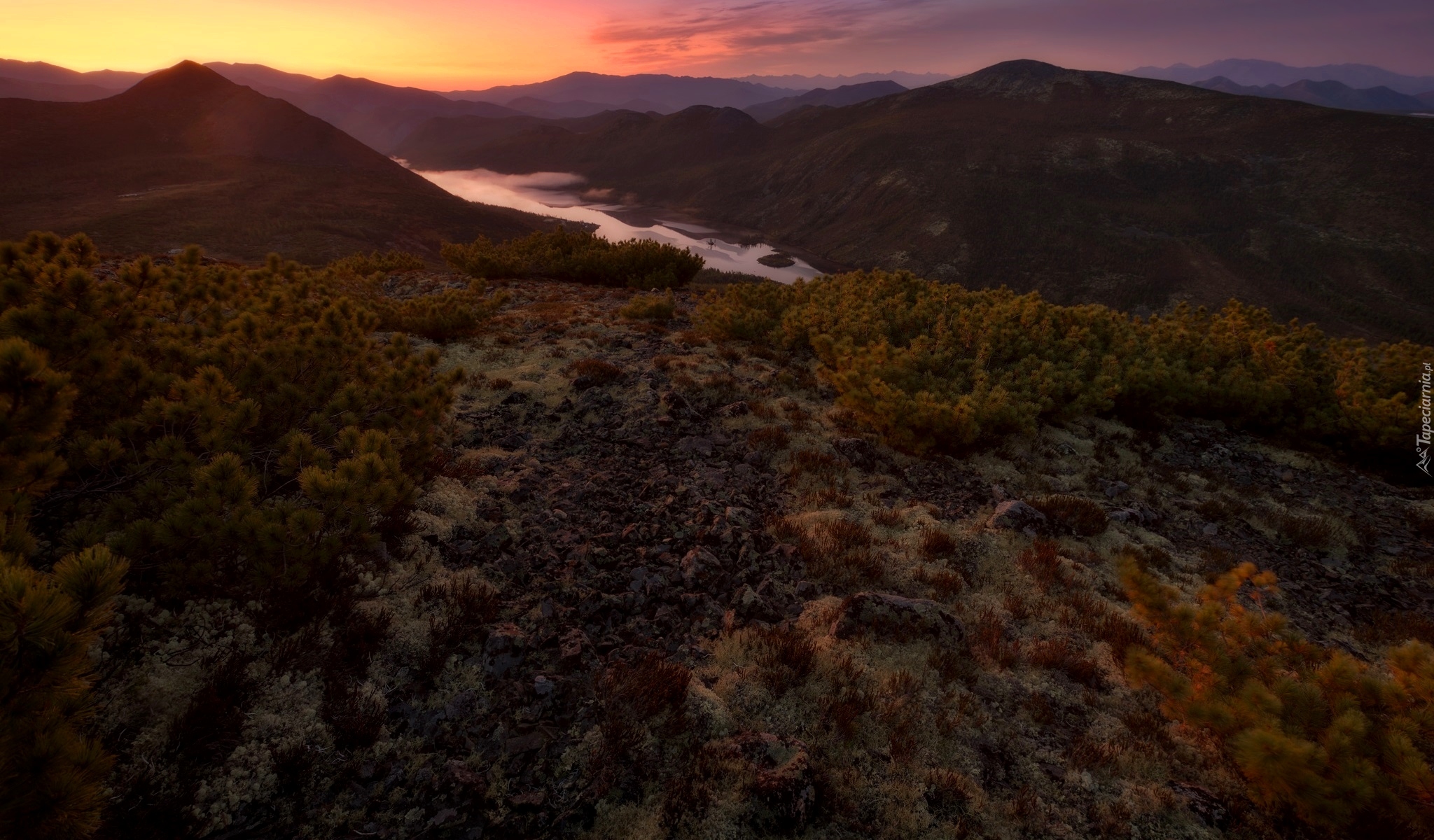 Edytor tapety: Jezioro Tantsuyushchikh Khariusov i góry Kołymskie