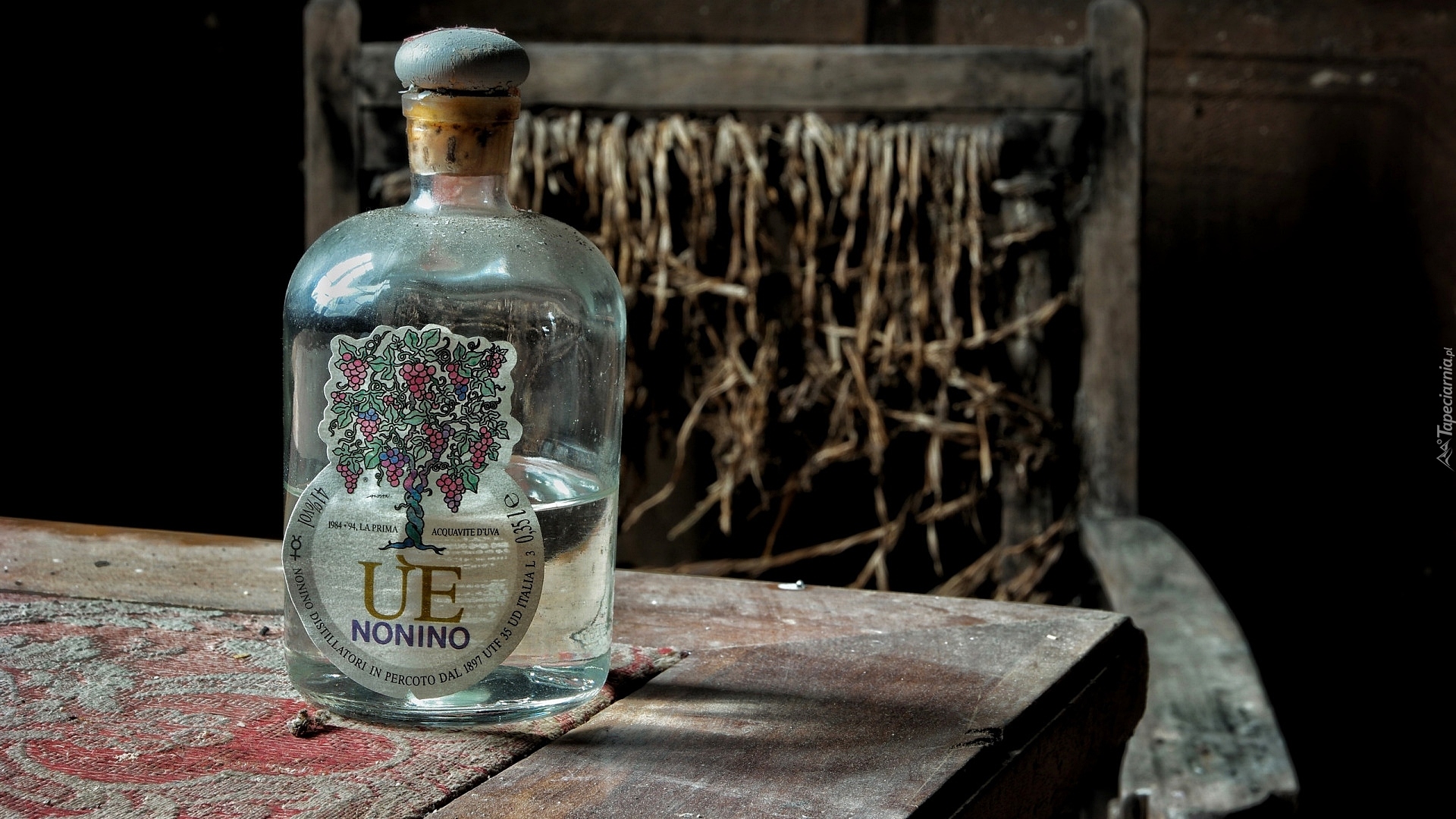 Edytor tapety: Zakurzona butelka na stole