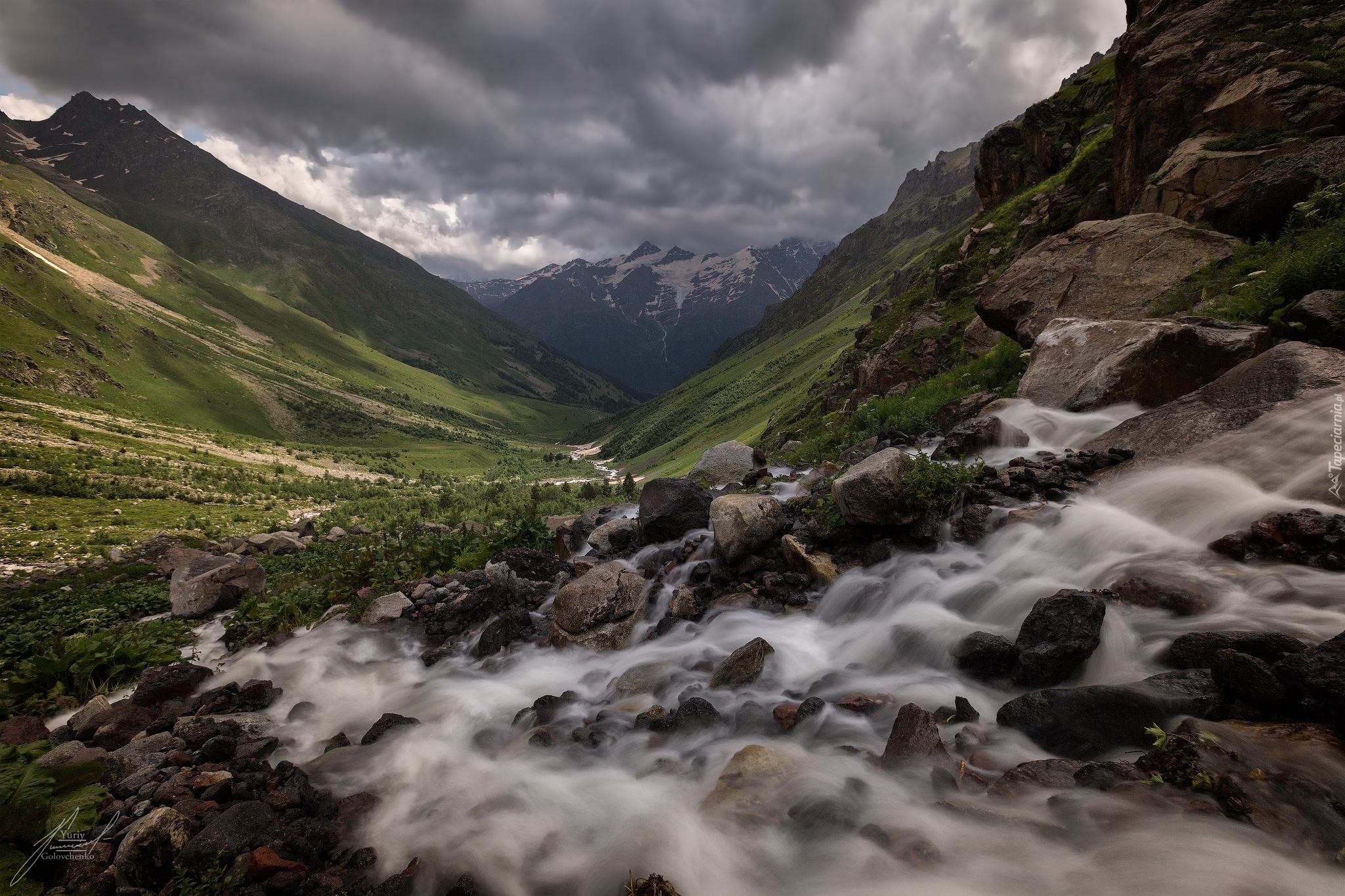 Edytor tapety: Górski kamienisty potok