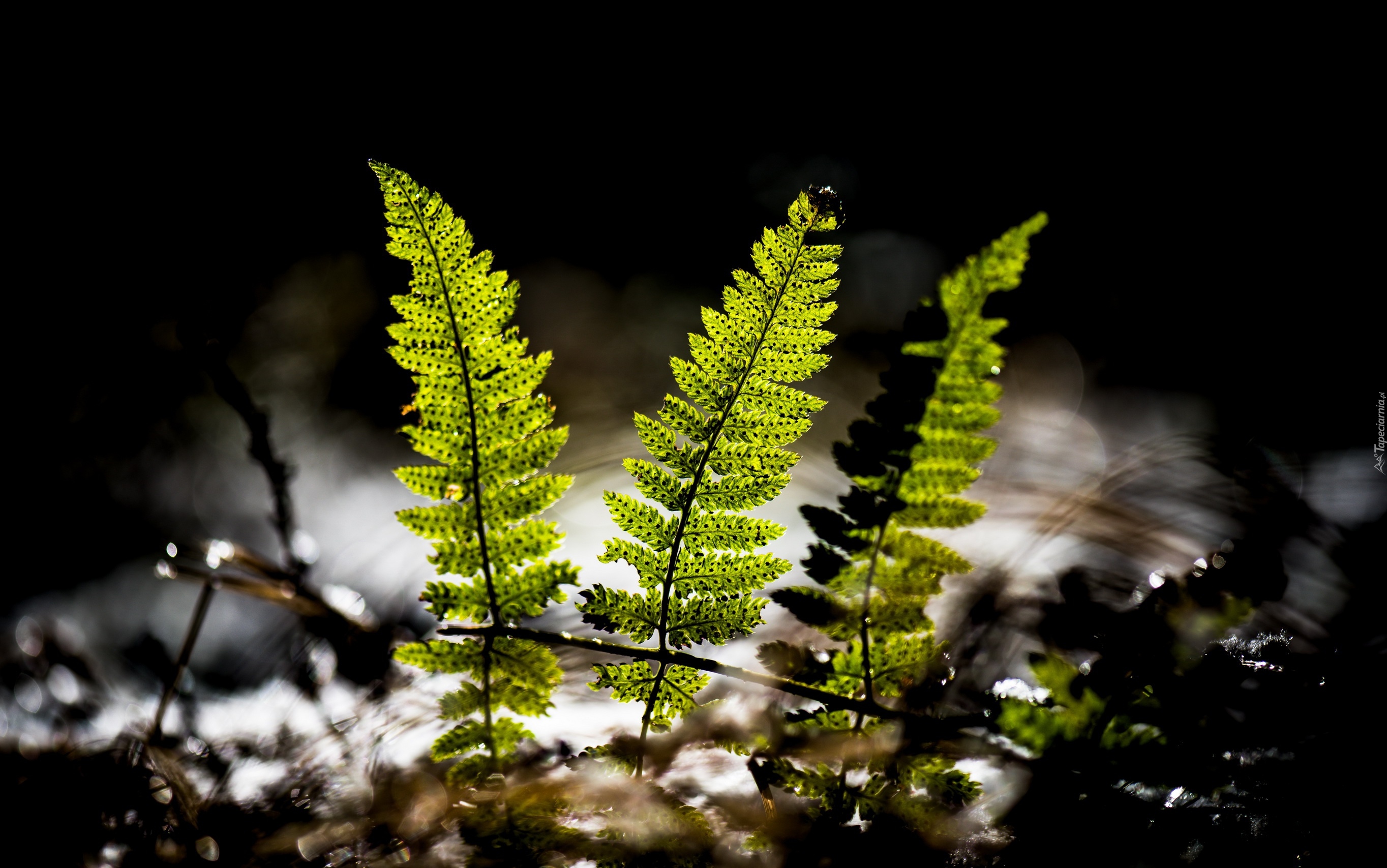 Edytor tapety: Paprocie w świetle na czarnym tle