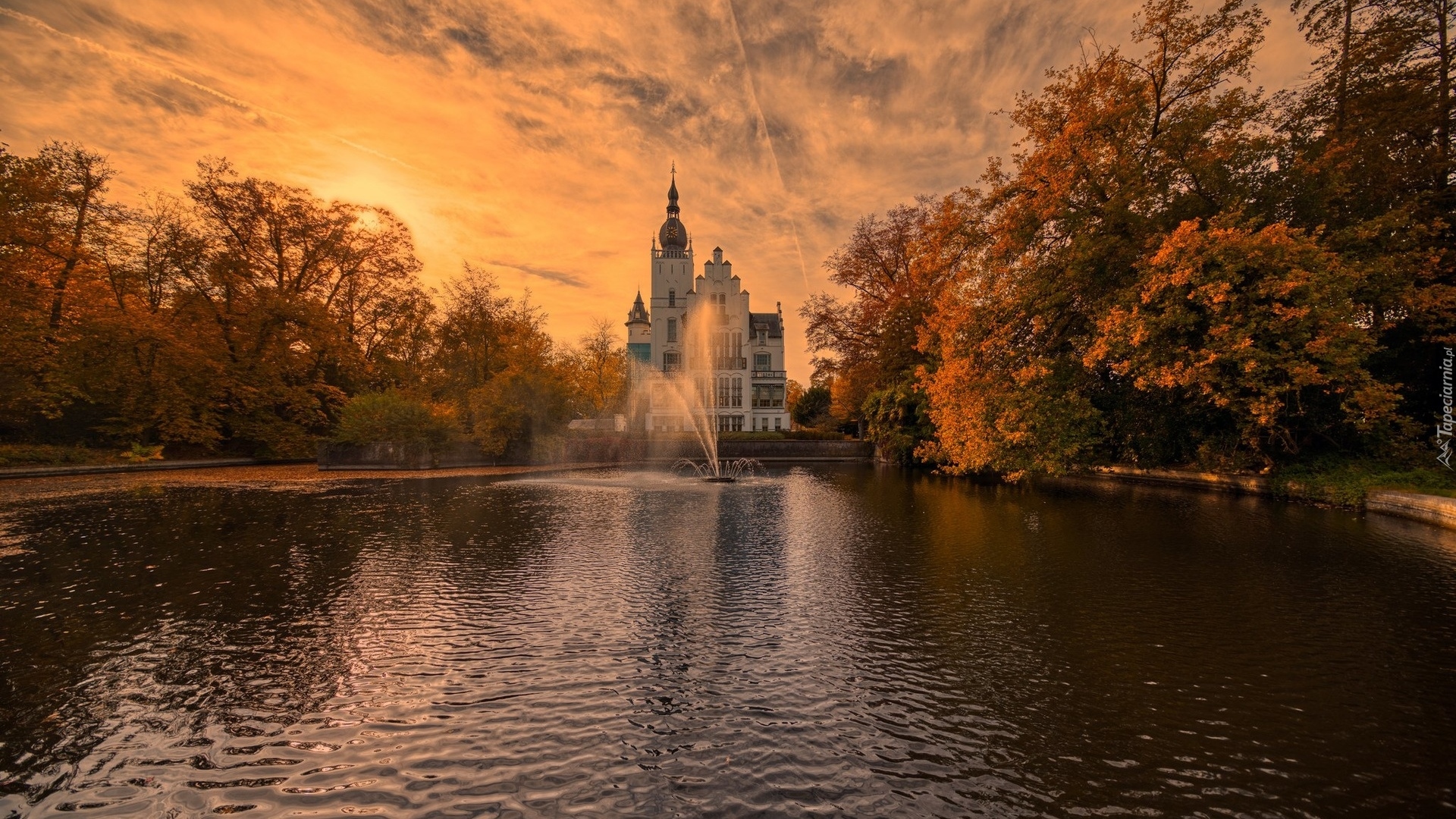 Edytor tapety: Fontanna na tle zamku