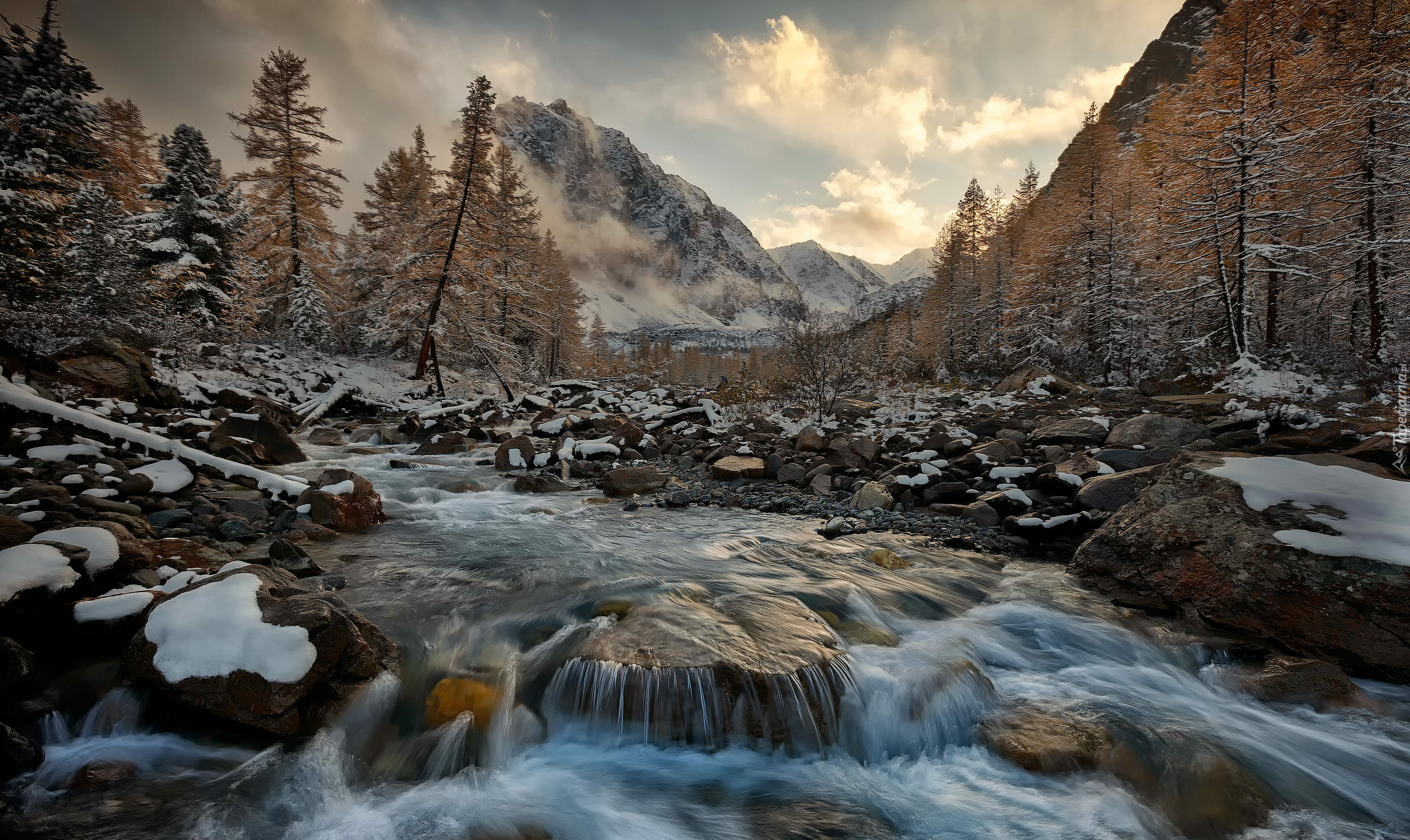Edytor tapety: Górska rzeka płynąca po kamieniach