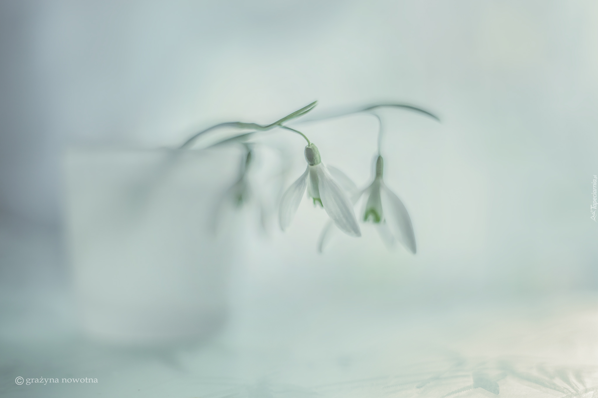 Edytor tapety: Pochylone białe przebiśniegi