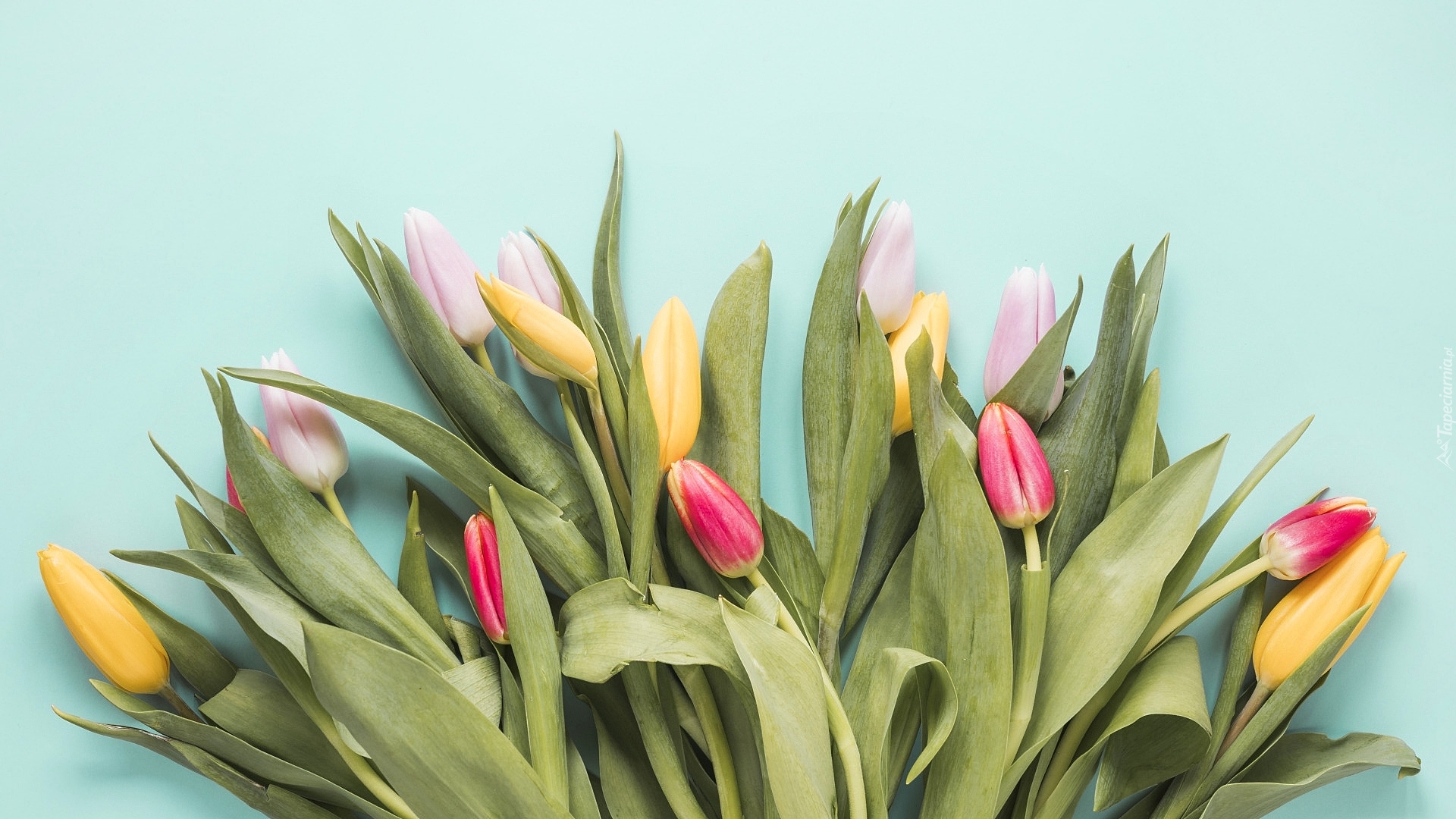 Edytor tapety: Bukiet różnokolorowych tulipanów