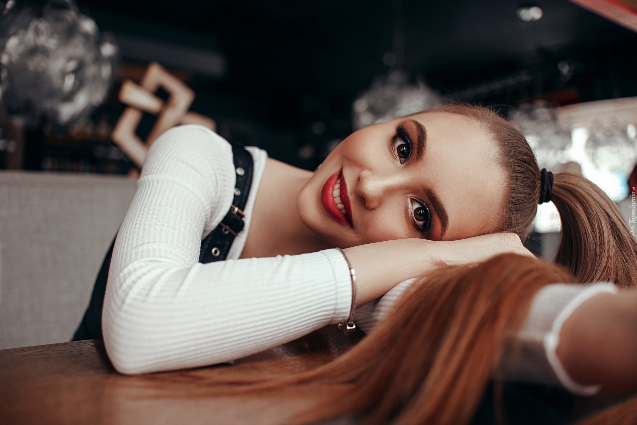 Edytor tapety: Uśmiechnięta kobieta z kucykiem