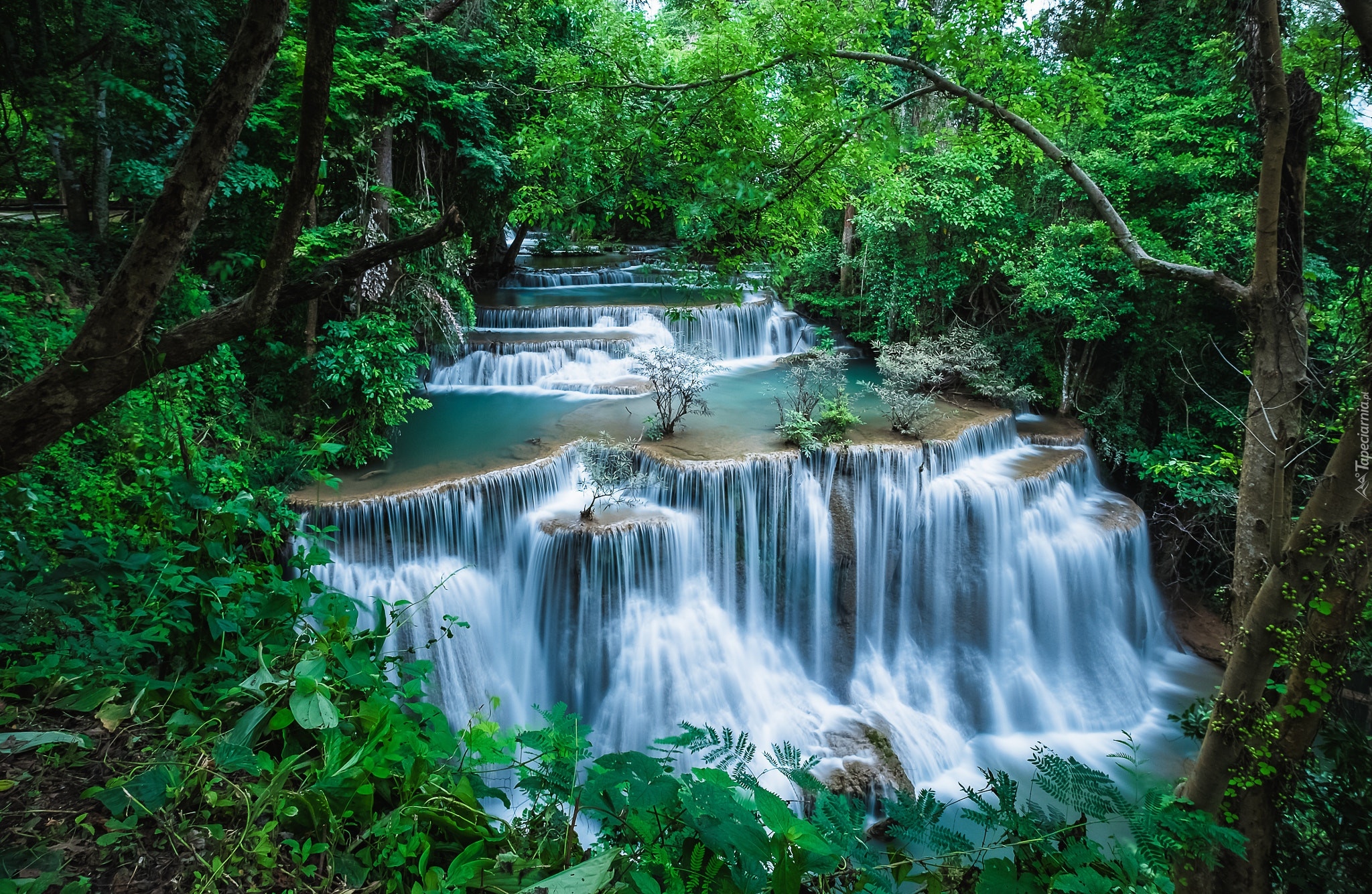 Edytor tapety: Wodospad kaskadowy Erawan w Tajlandii