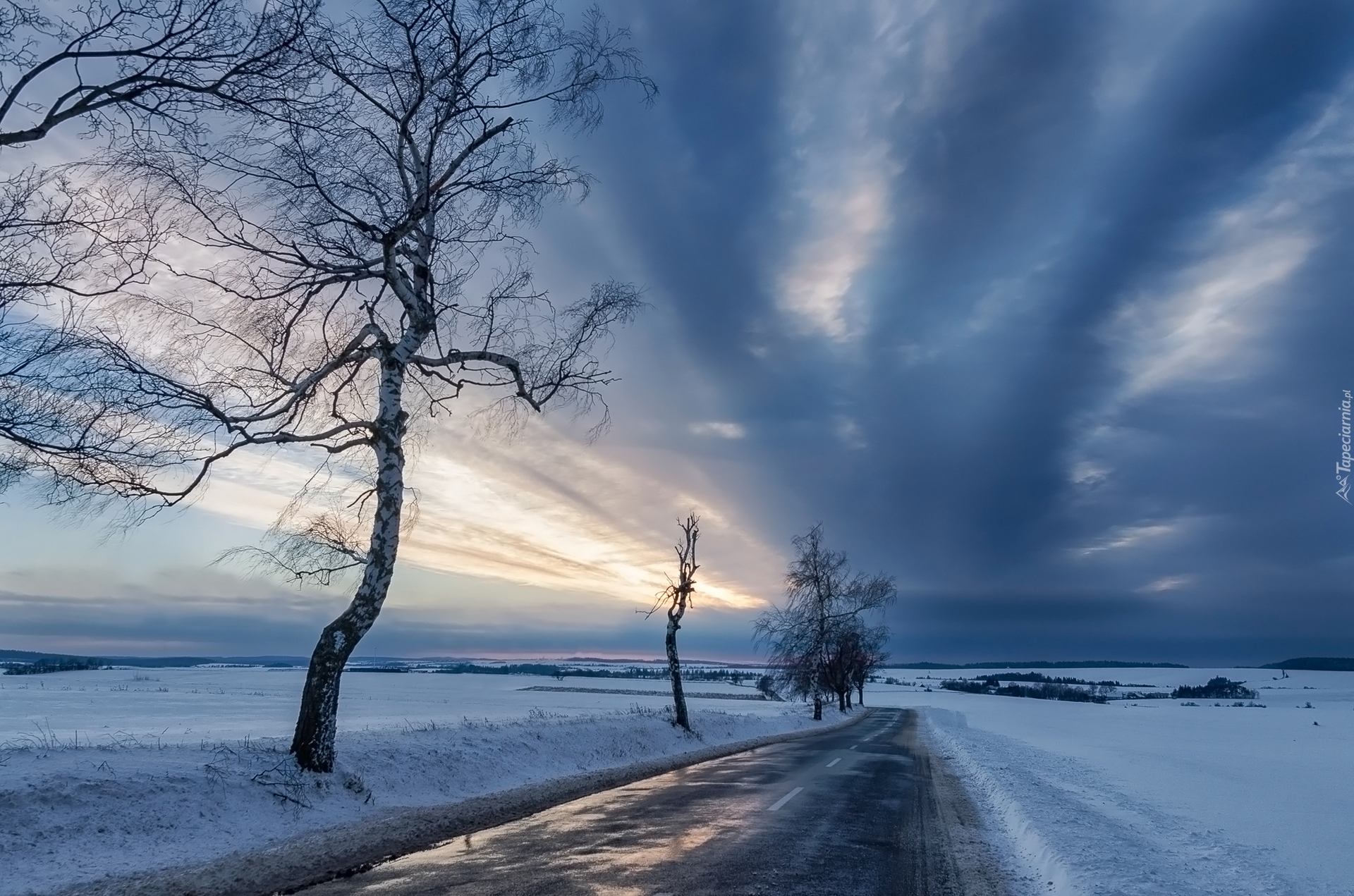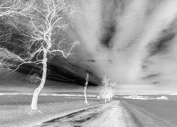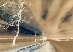Edytor tapety: Droga pośród zaśnieżonych pól