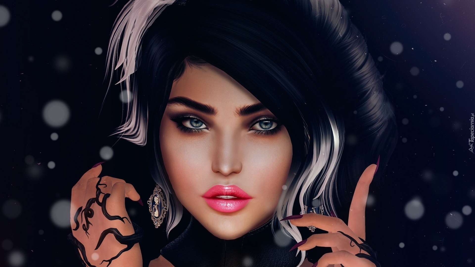 Edytor tapety: Dziewczyna z jasnymi pasemkami w ciemnych włosach