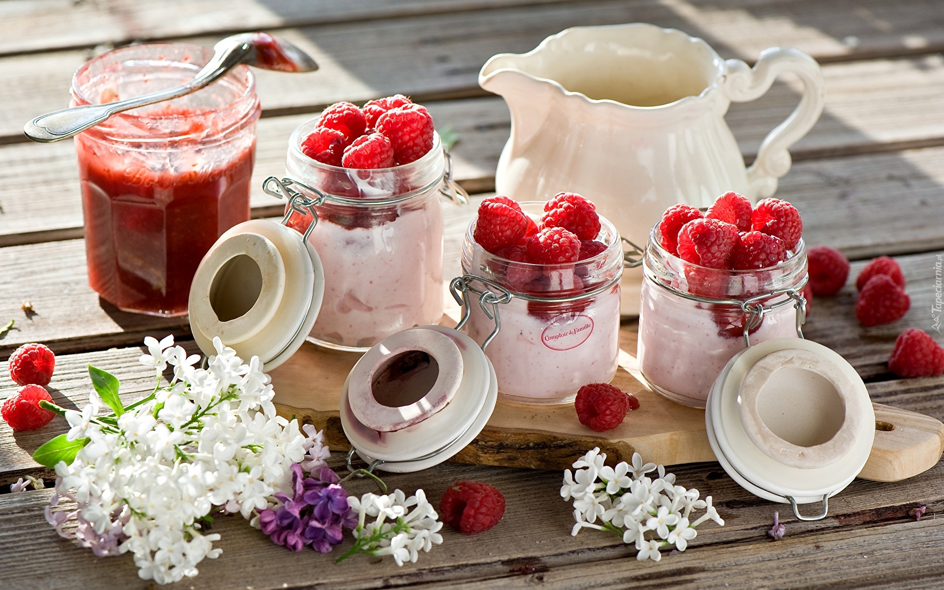 Edytor tapety: Deser z malinami w słoikach