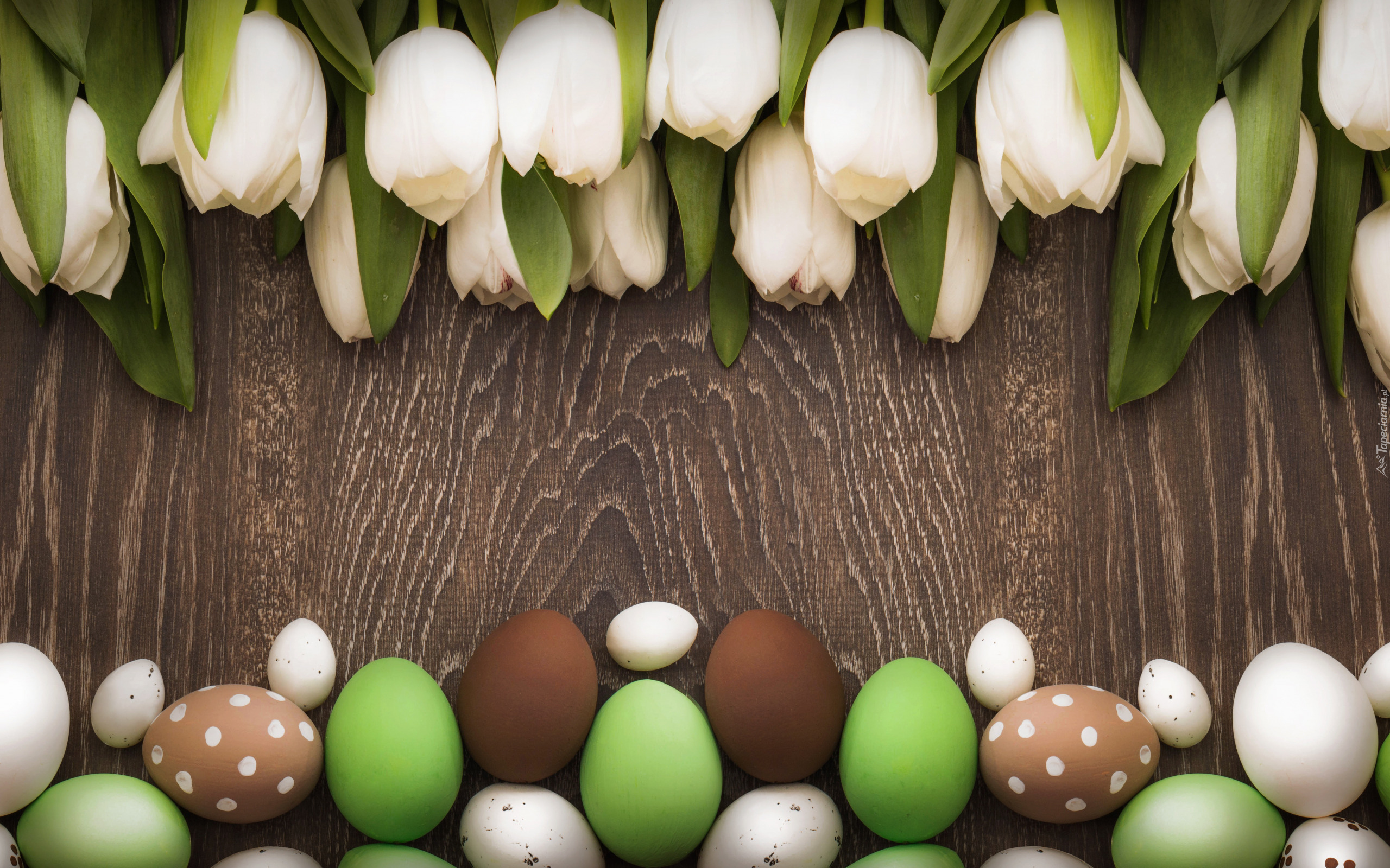 Edytor tapety: Kolorowe pisanki z białymi tulipanami
