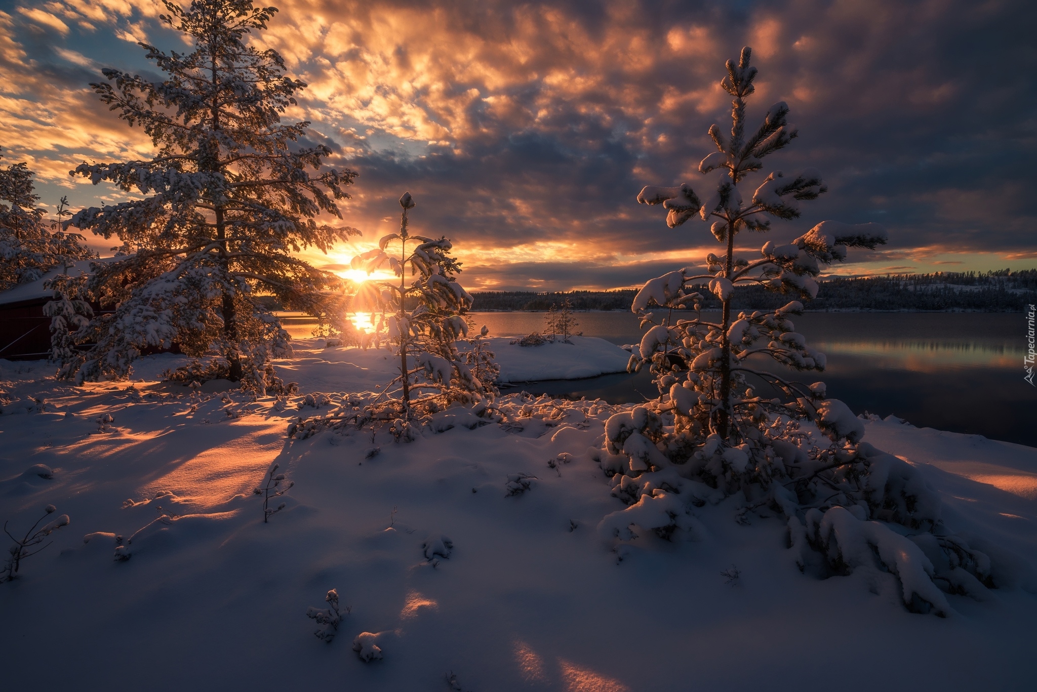Edytor tapety: Zimowy krajobraz nad jeziorem w Ringerike