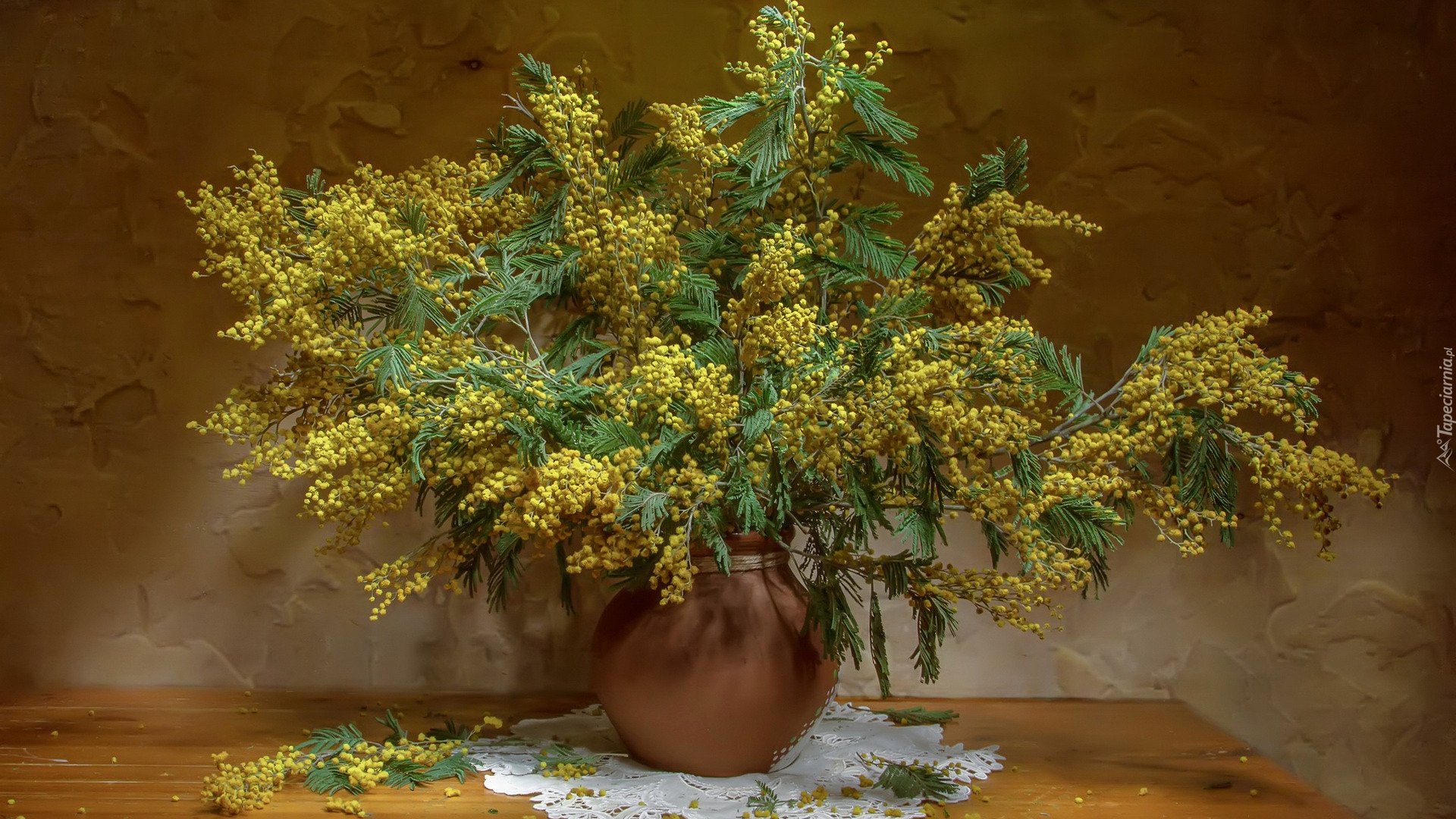 Edytor tapety: Gałązki akacji srebrzystej w wazonie