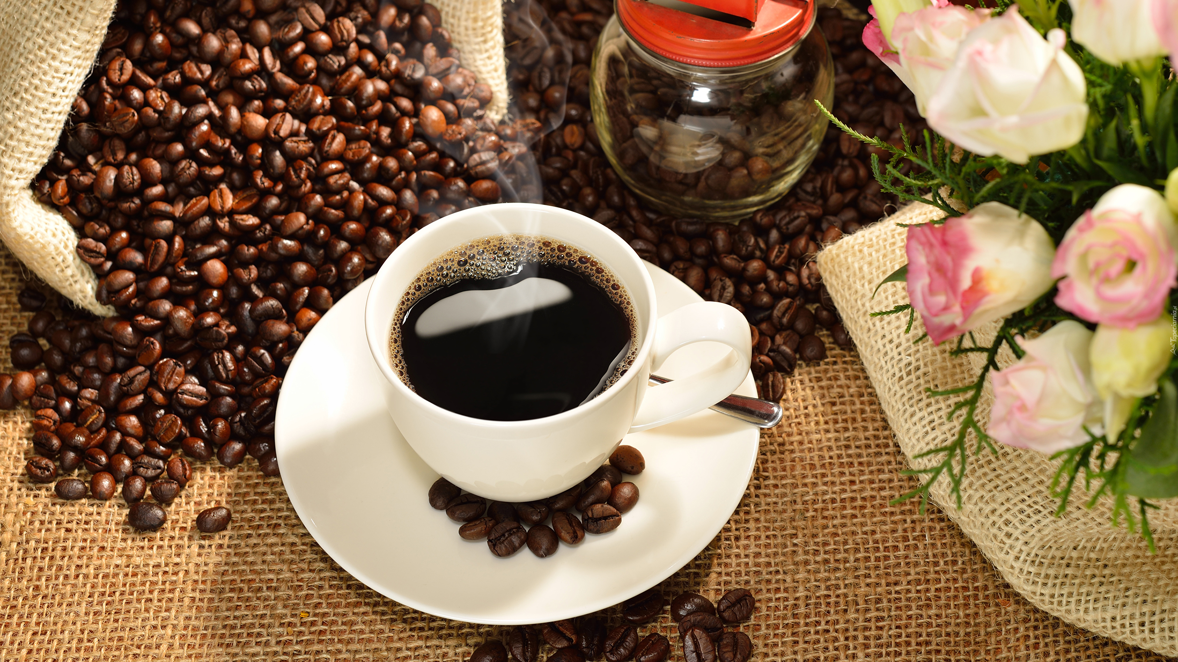 Edytor tapety: Róże obok filiżanki kawy