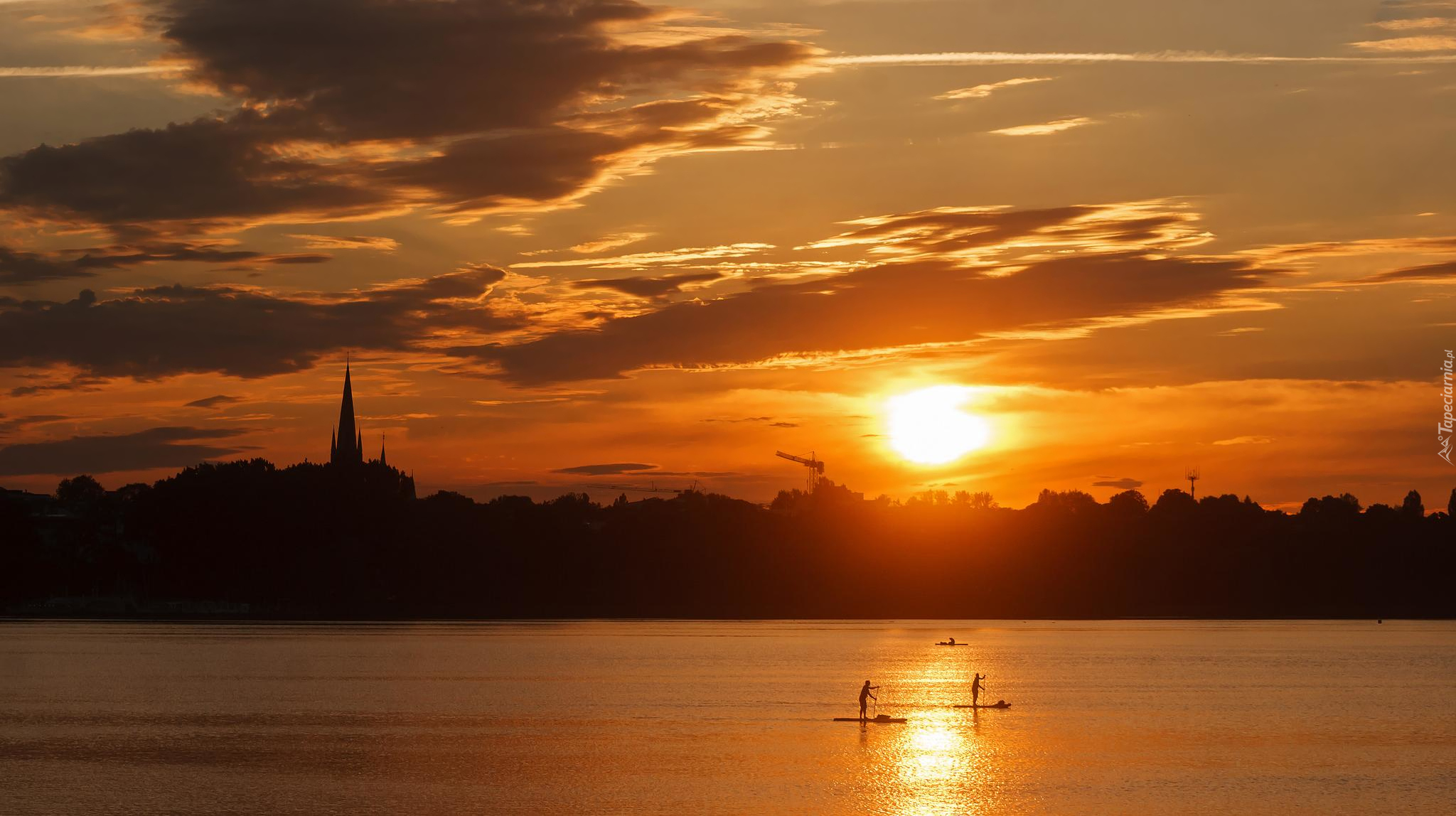 Edytor tapety: Rzeka rozświetlona zachodem słońca