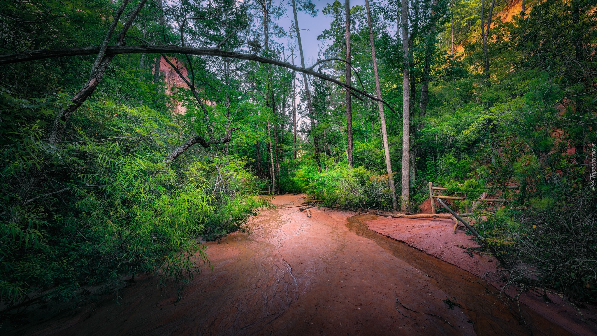 Edytor tapety: Rzeka w zielonym lesie