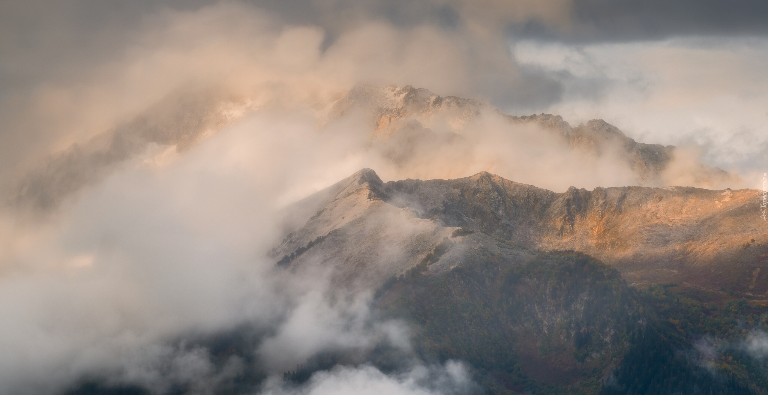 Edytor tapety: Szczyty gór we mgle