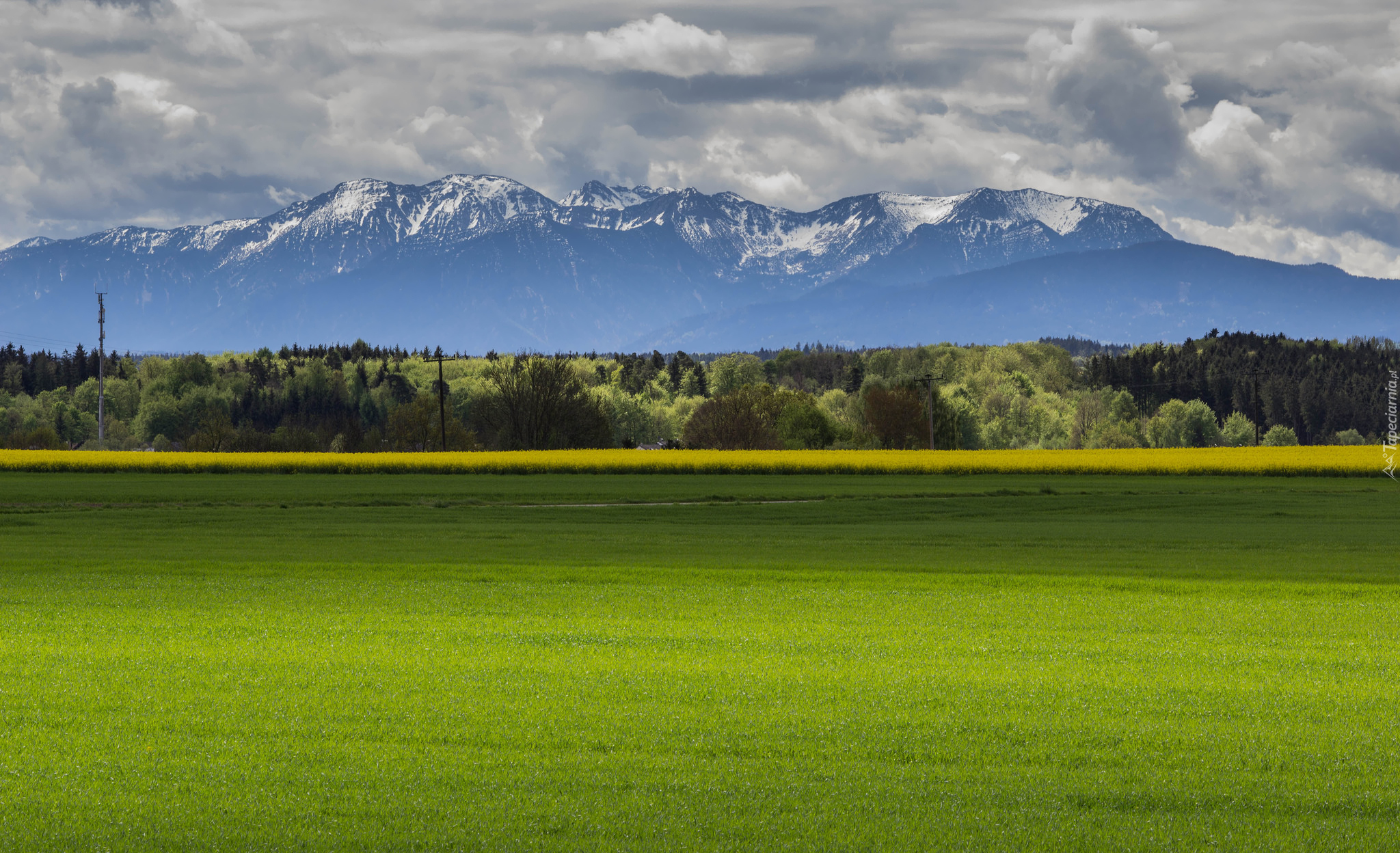 Edytor tapety: Pola na tle gór