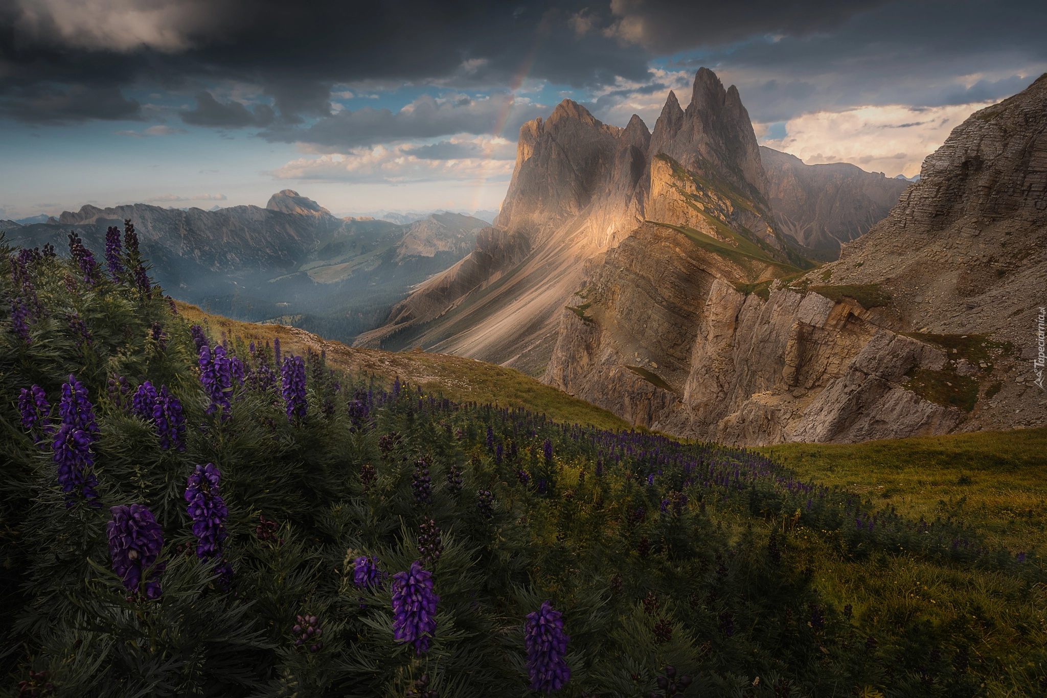 Edytor tapety: Tęcza nad górą Seceda we Włoszech