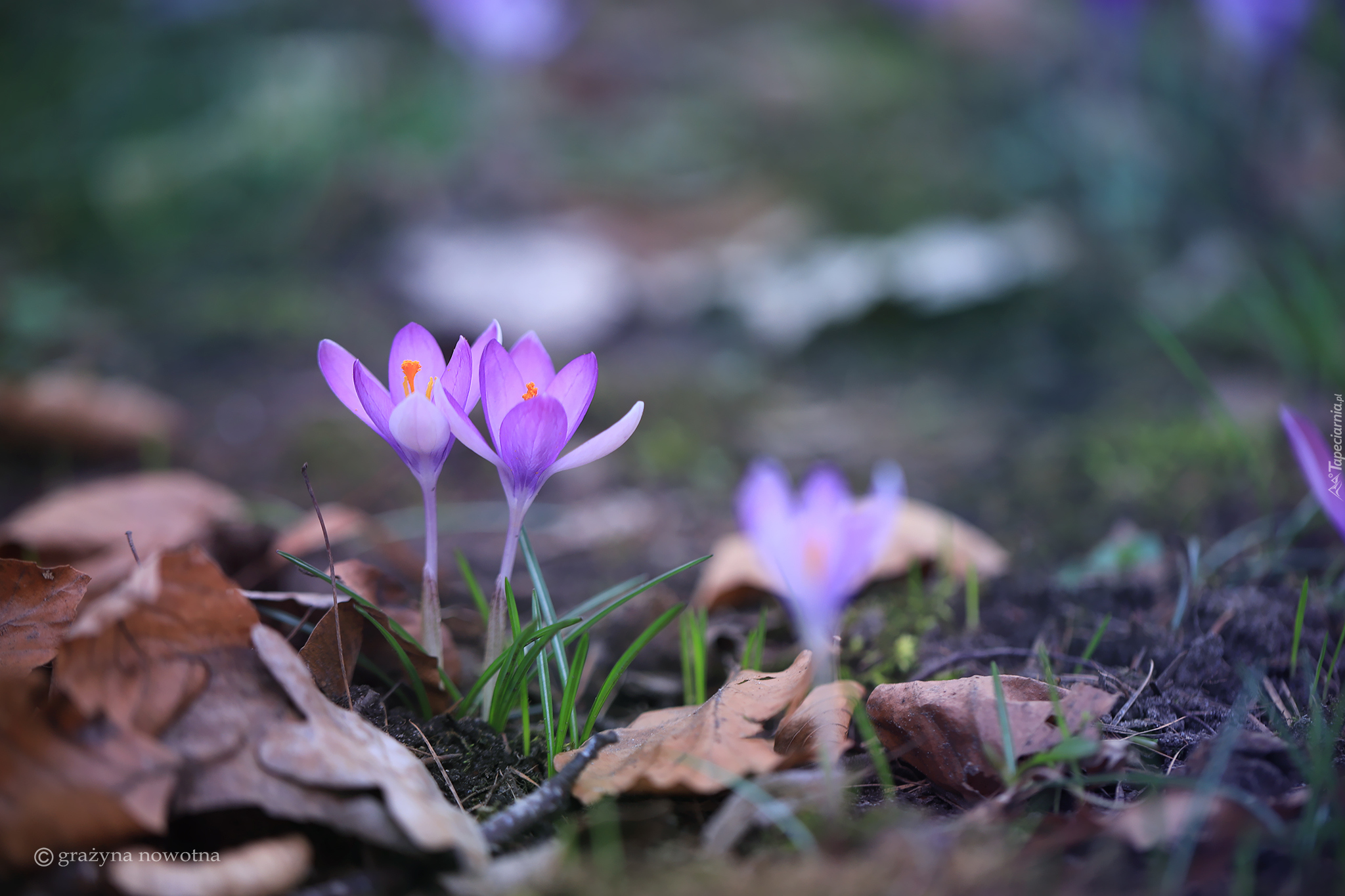 Edytor tapety: Dwa krokusy w liściach