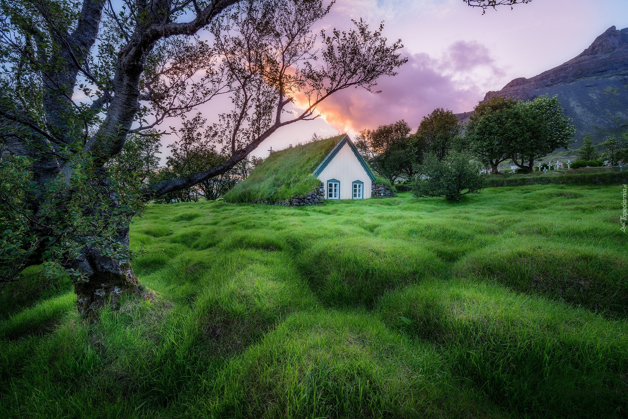 Edytor tapety: Kościół Hofskirkja w islandzkiej osadzie Hof