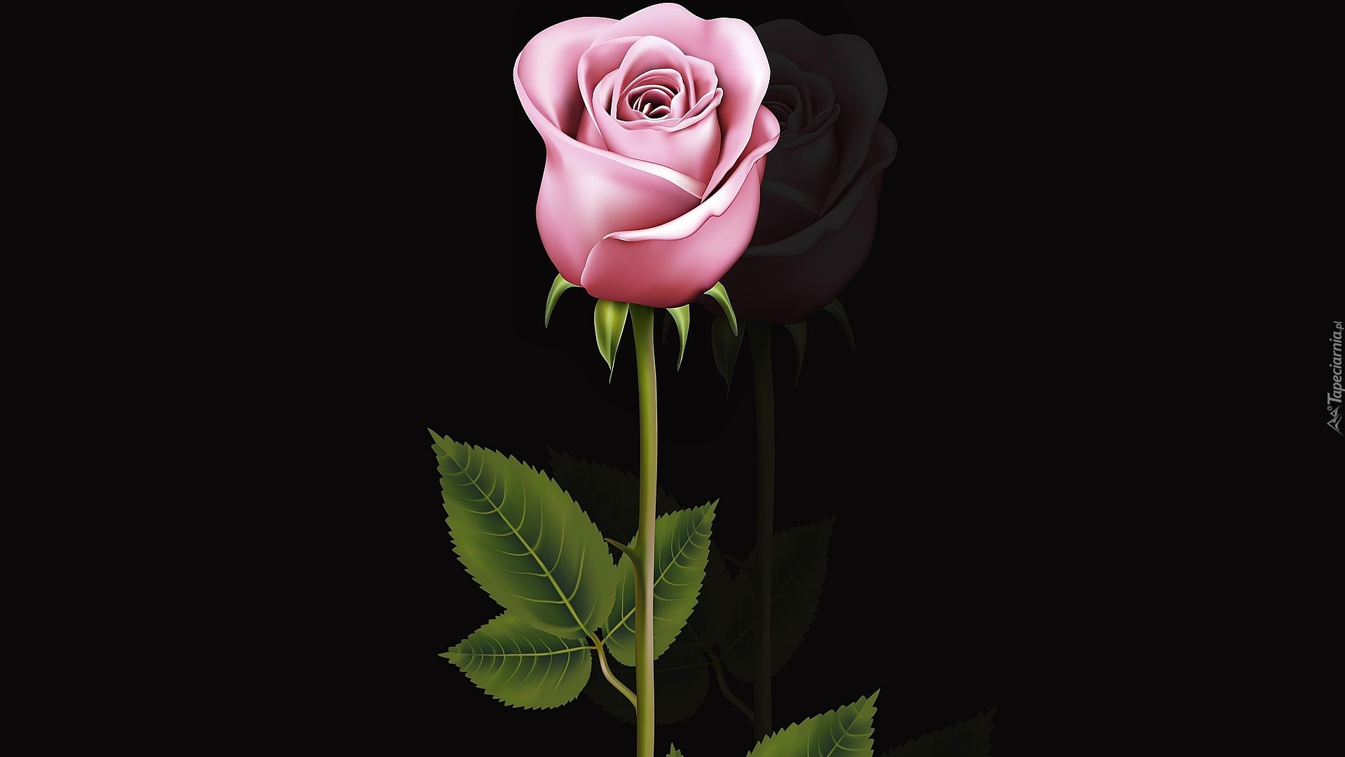 Edytor tapety: Różowa róża z listkiem w grafice