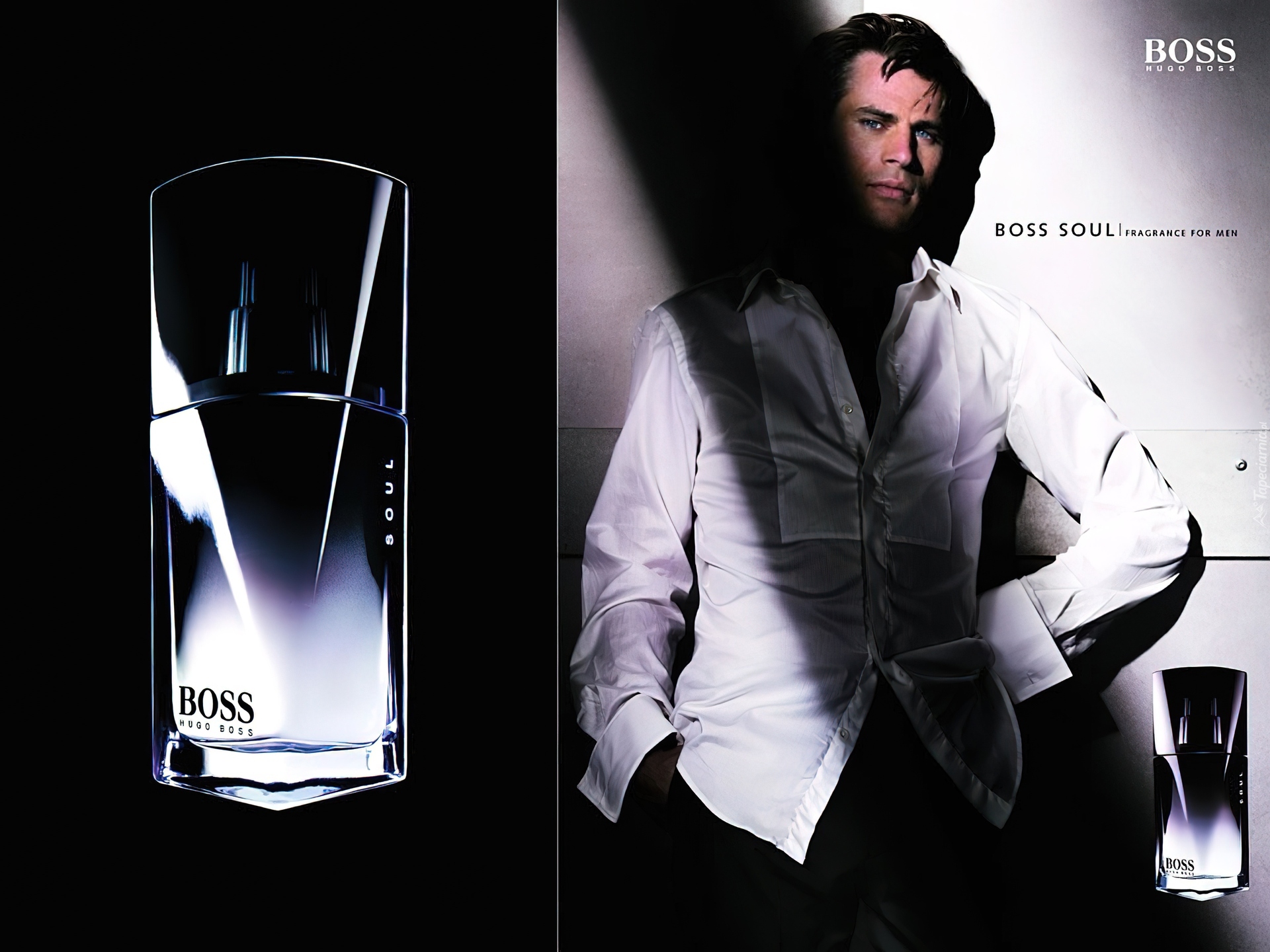 Edytor tapety: Hugo Boss, mężczyzna, koszula, flakon, perfumy