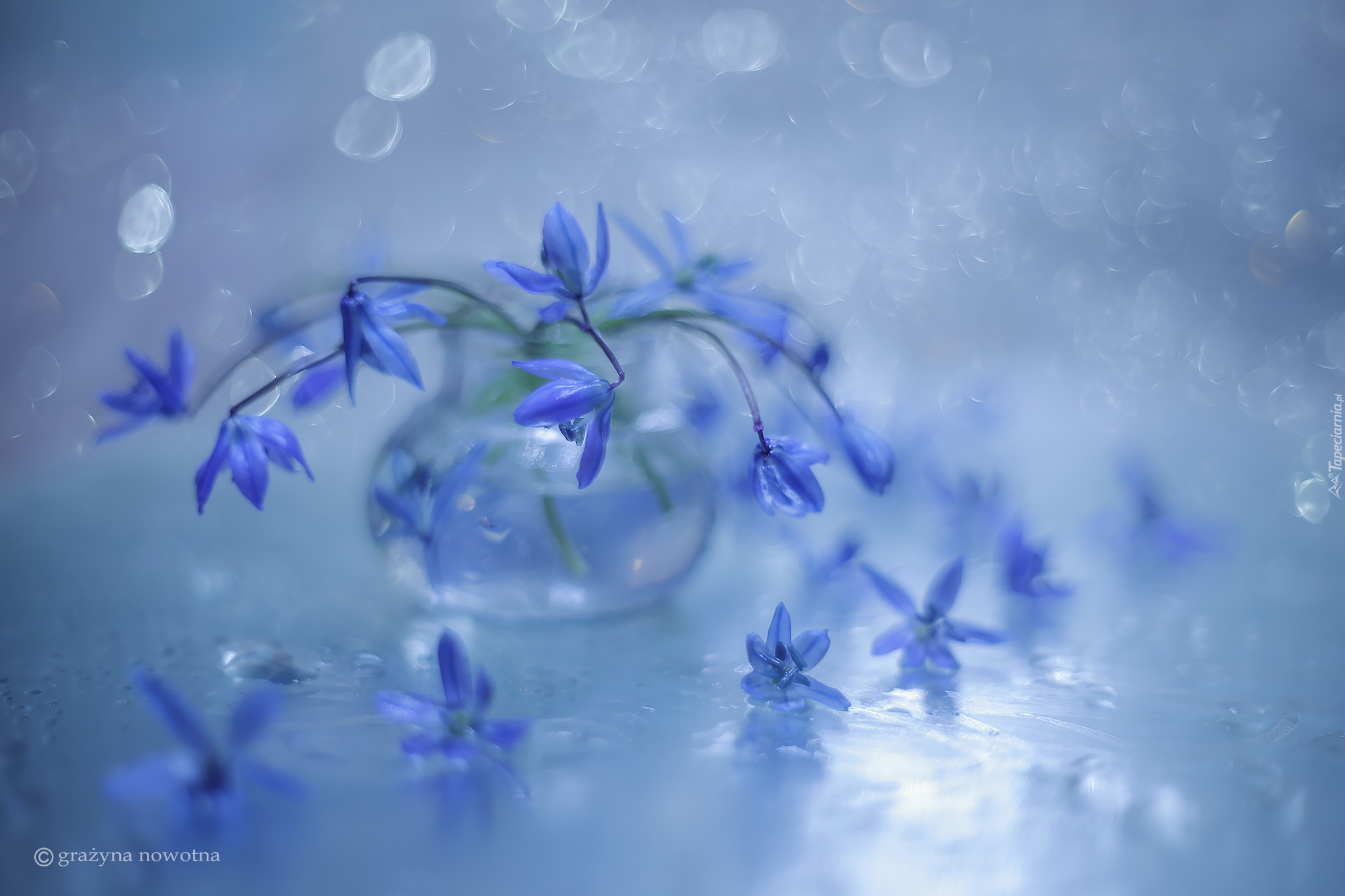 Edytor tapety: Kwiaty cebulicy syberyjskiej w wazoniku