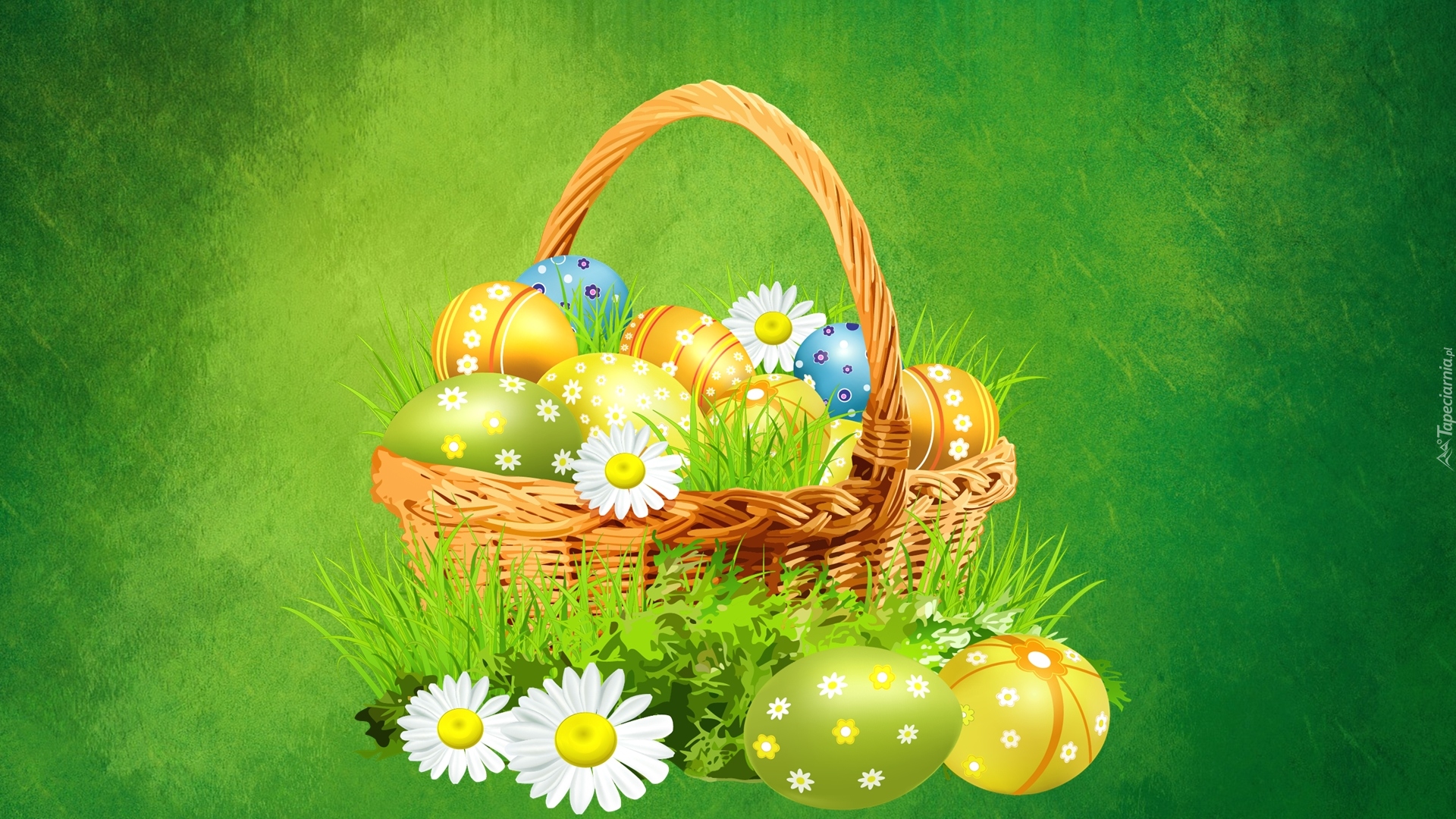 Edytor tapety: Kolorowe pisanki w koszyczku