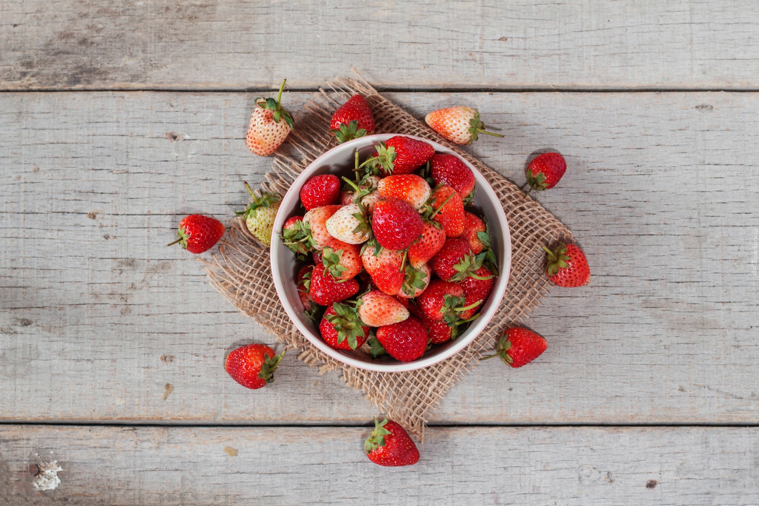 Edytor tapety: Truskawki w miseczce postawionej na serwetce