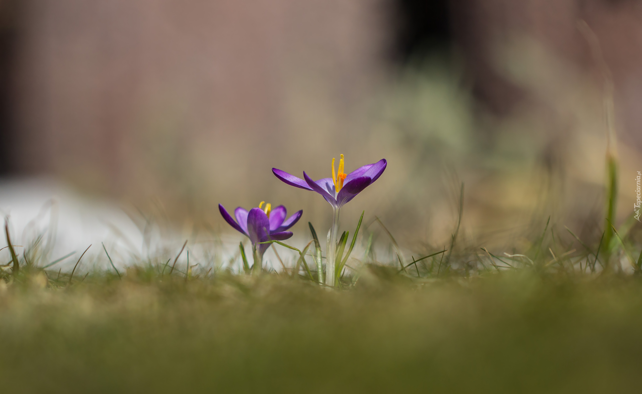 Edytor tapety: Kwitnące krokusy na rozmytym tle