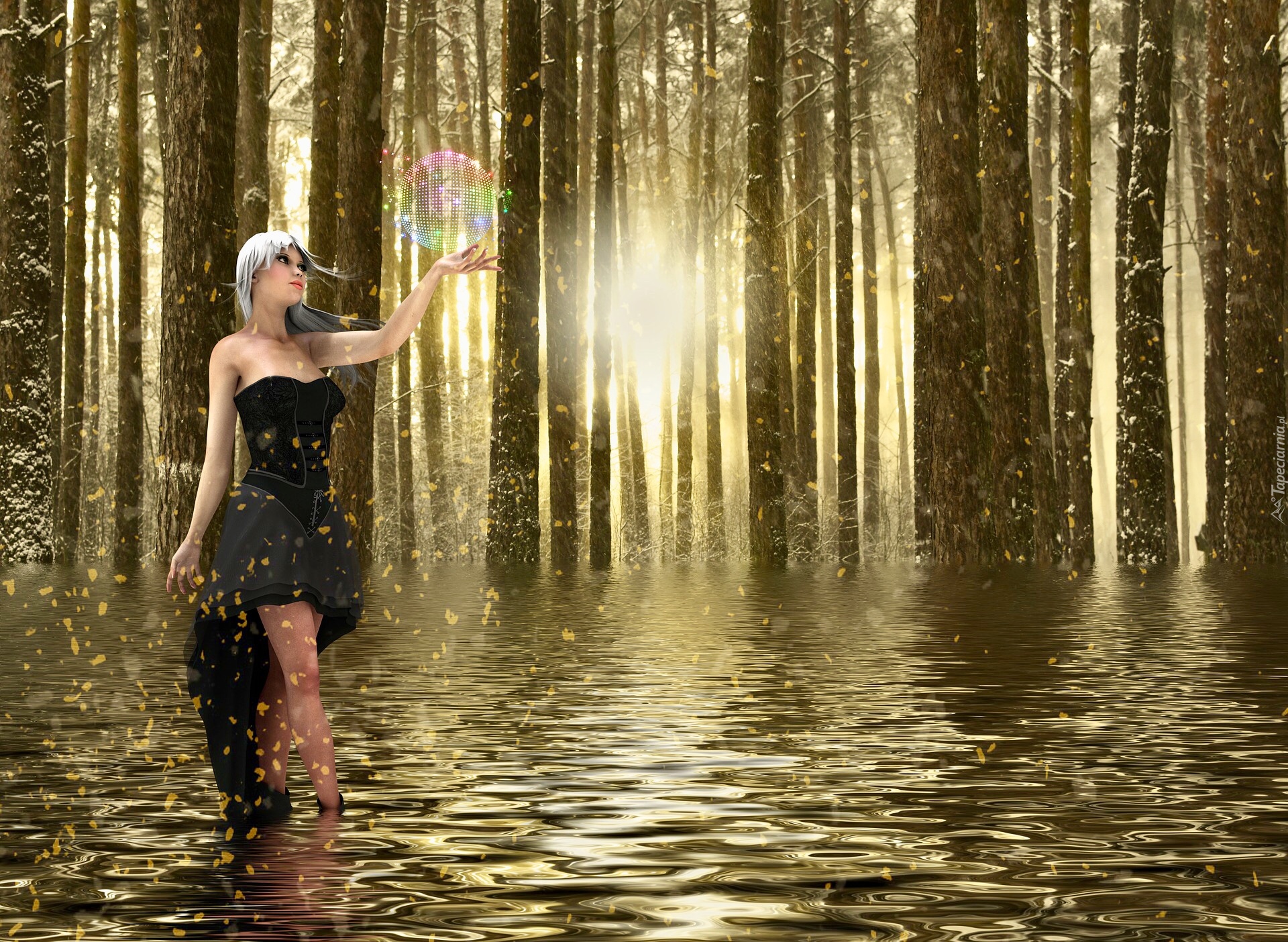 Edytor tapety: Dziewczyna z kolorową kulą na dłoni