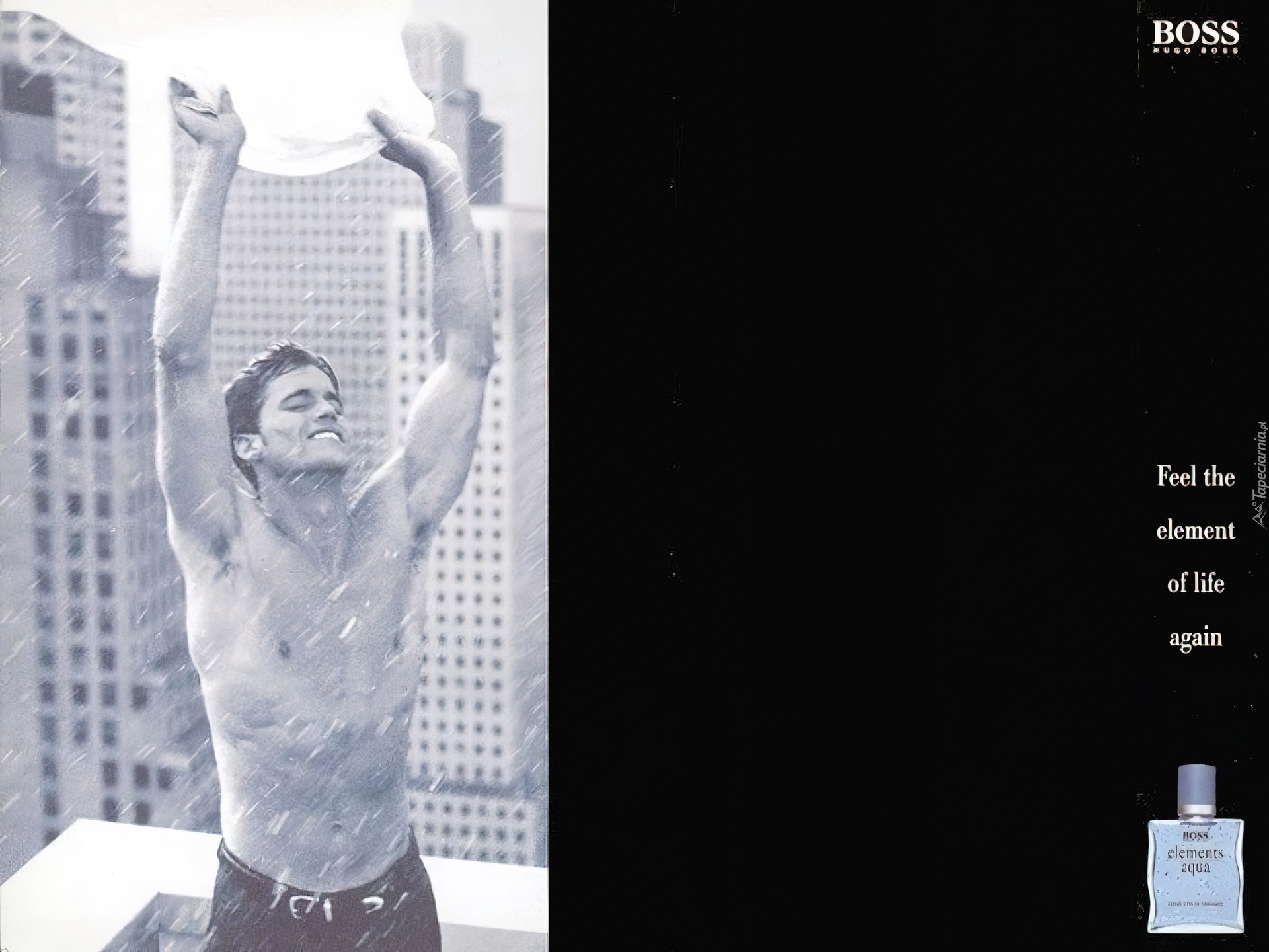 Edytor tapety: Hugo Boss, mężczyzna, deszcz, flakon, perfumy