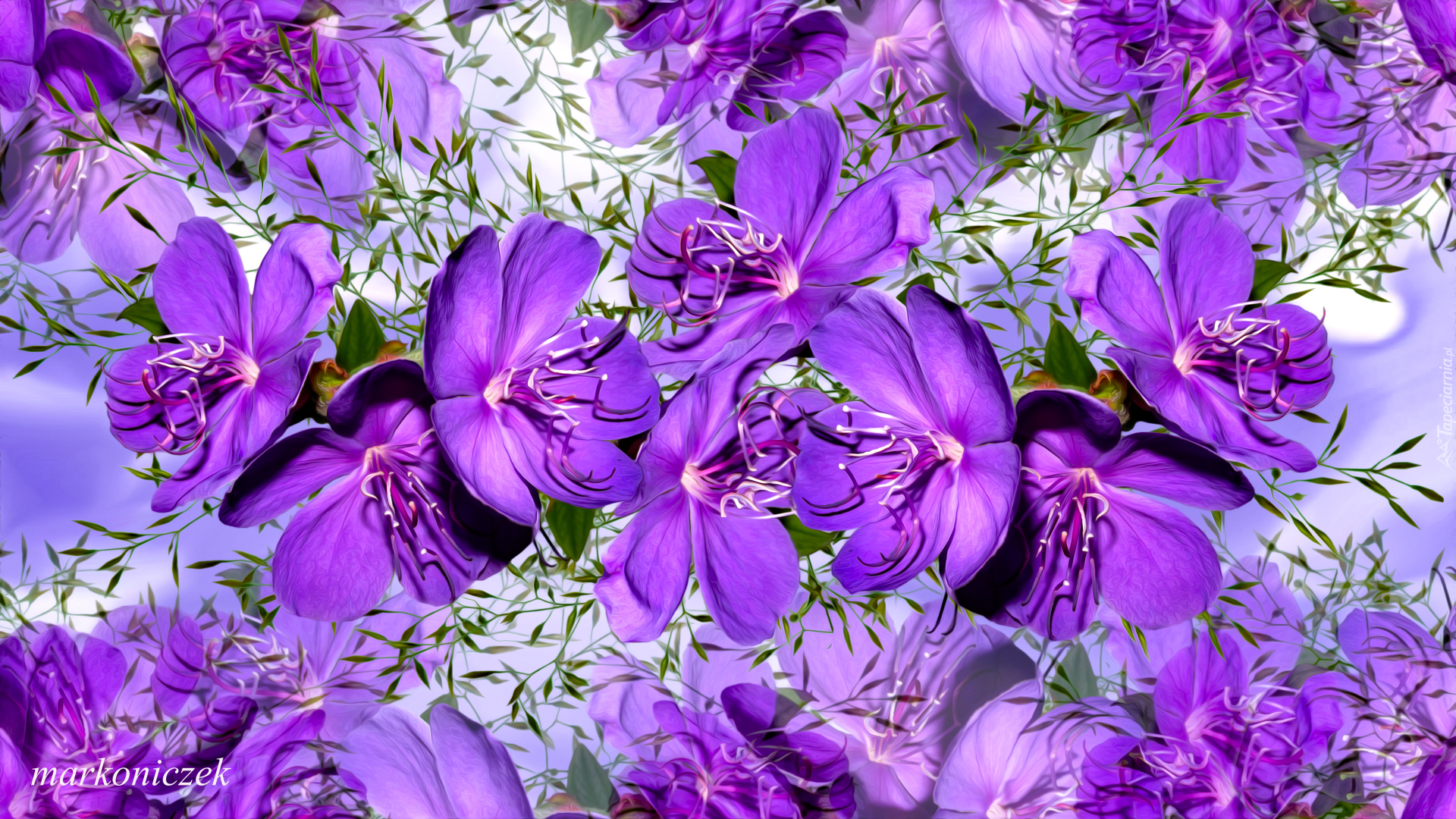Edytor tapety: Fioletowe graficzne kwiatki
