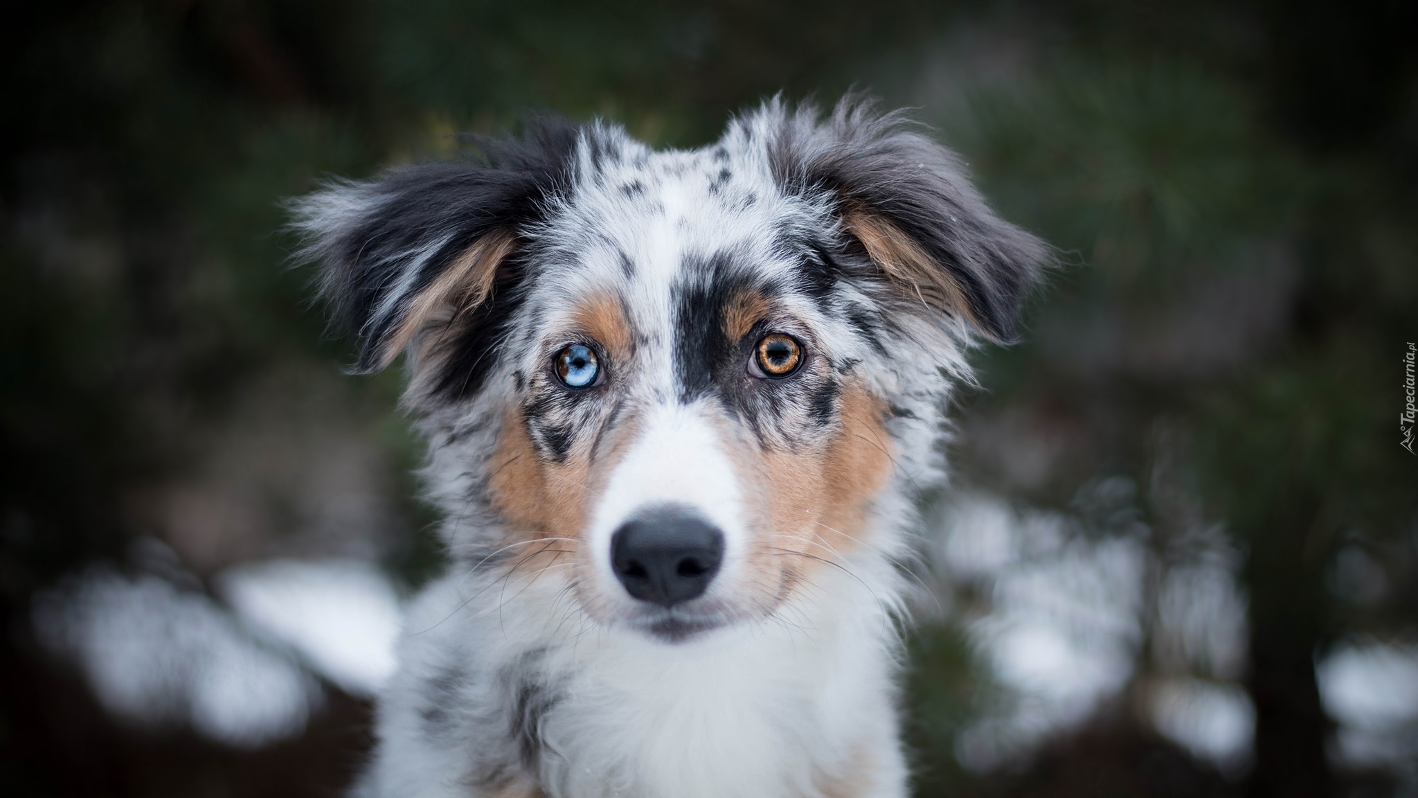 Edytor tapety: Owczarek australijski z kolorowymi oczami