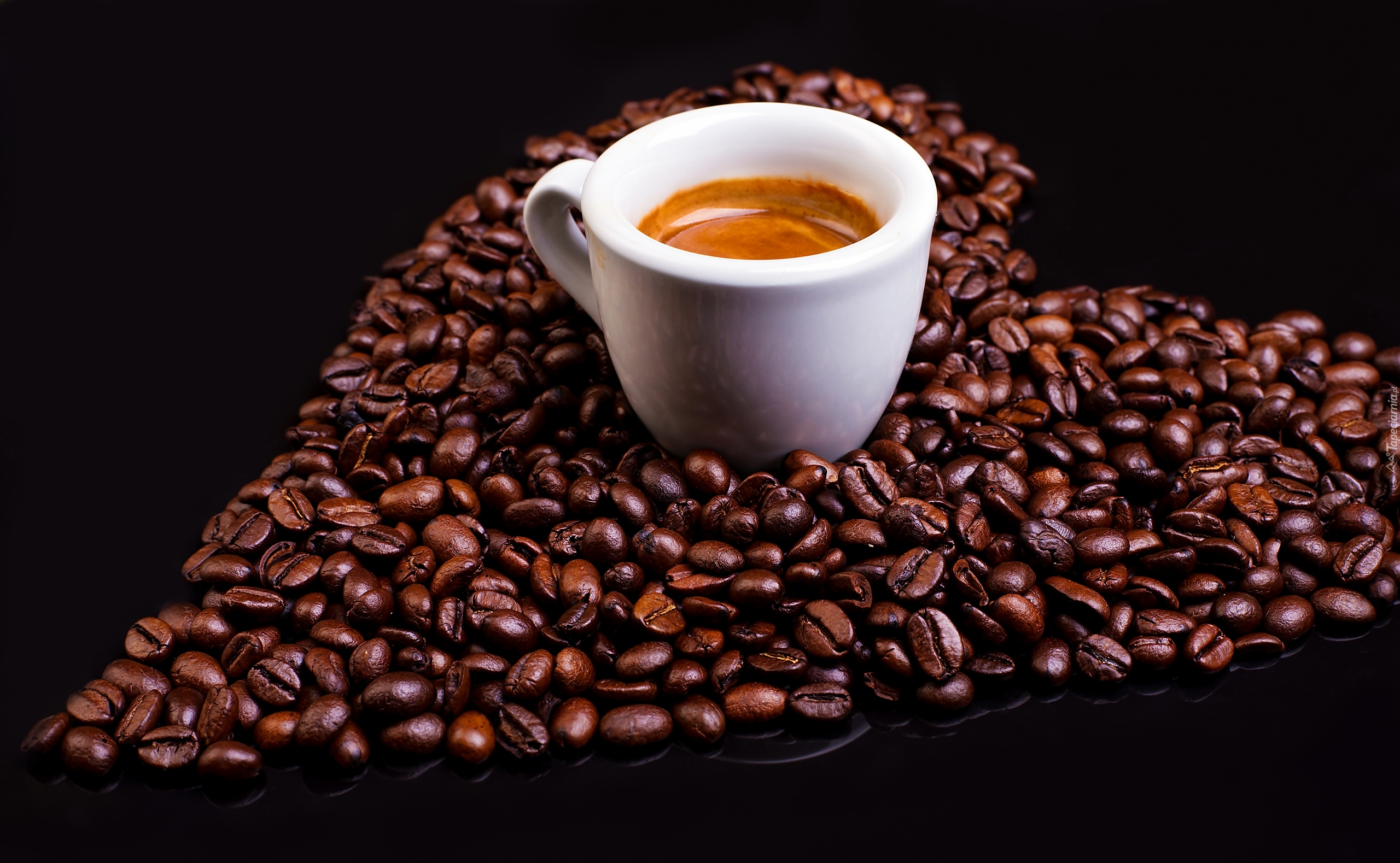 Edytor tapety: Filiżanka na sercu ułożonym z ziaren kawy