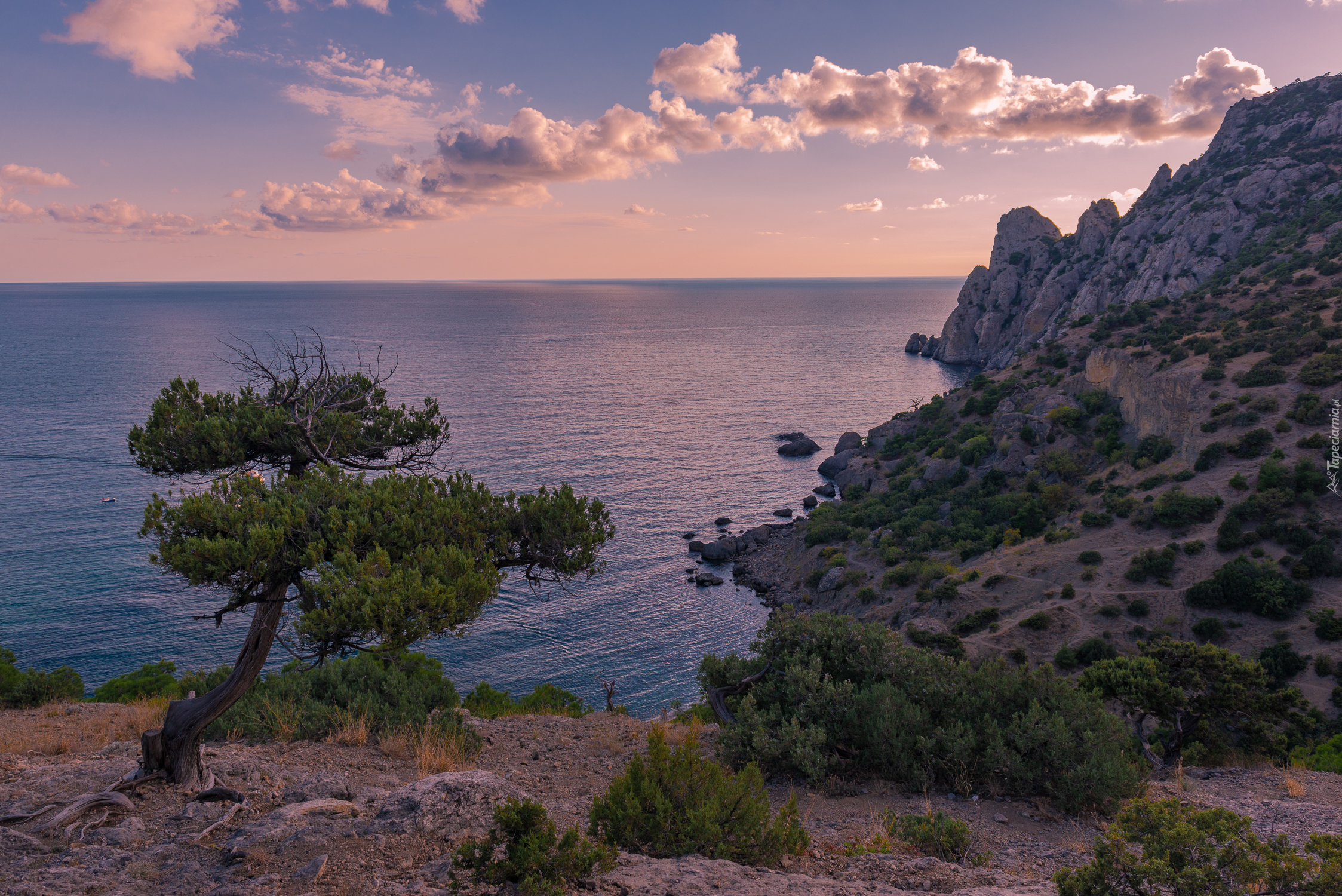 Edytor tapety: Chmury nad skalistym brzegiem morza