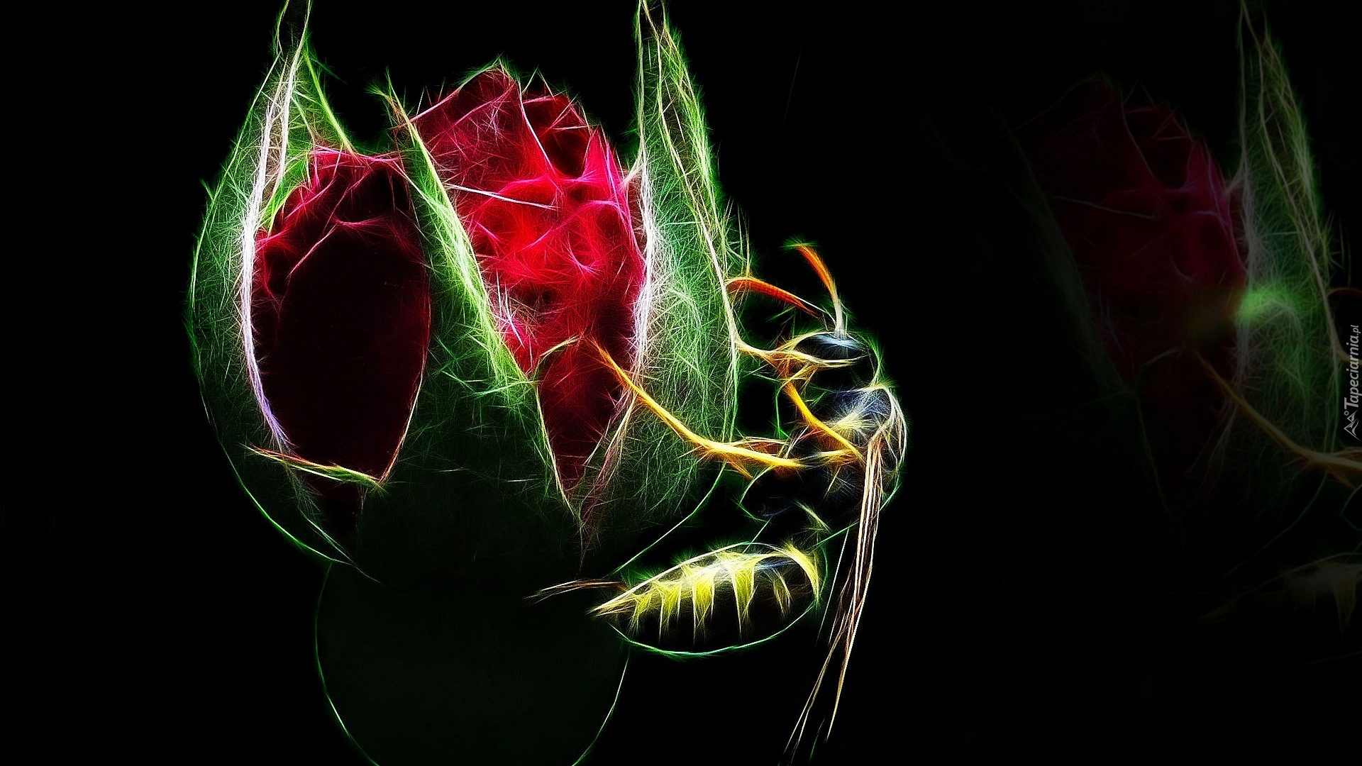 Edytor tapety: Pszczoła na pąku róży w grafice