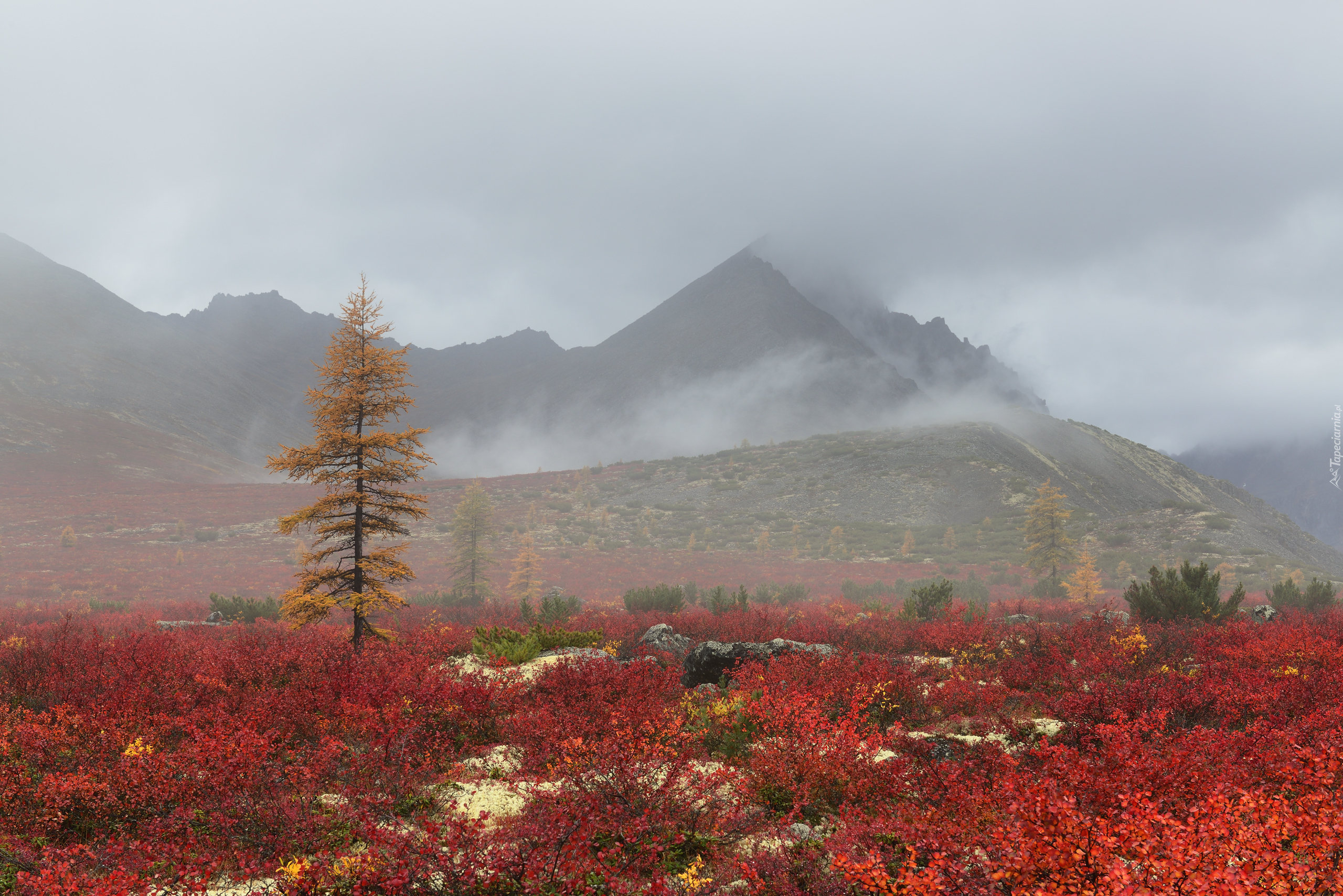 Edytor tapety: Zamglone góry na Kołymie jesienią